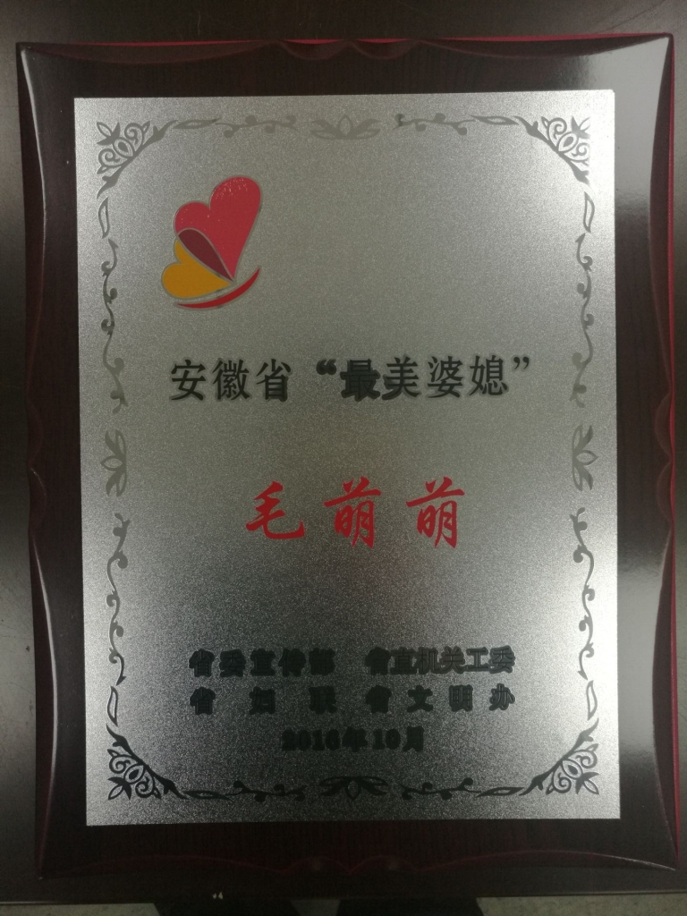 毛萌萌是我公司西北分公司員工柴琳家屬,因為丈夫長期在項目工作,聚少離多的現實情況讓她毅然選擇放棄心愛的教師工作,回家照顧年邁的父母和年幼的孩子,盡全力減輕丈夫的壓力,解決他的后顧之憂,幫助他更好的投入到工作中去,在生活中她勤儉持家,尊老愛幼,吃苦耐勞,任勞任怨,她熱愛家庭,無私奉獻的行為得到了大家的一致好評。