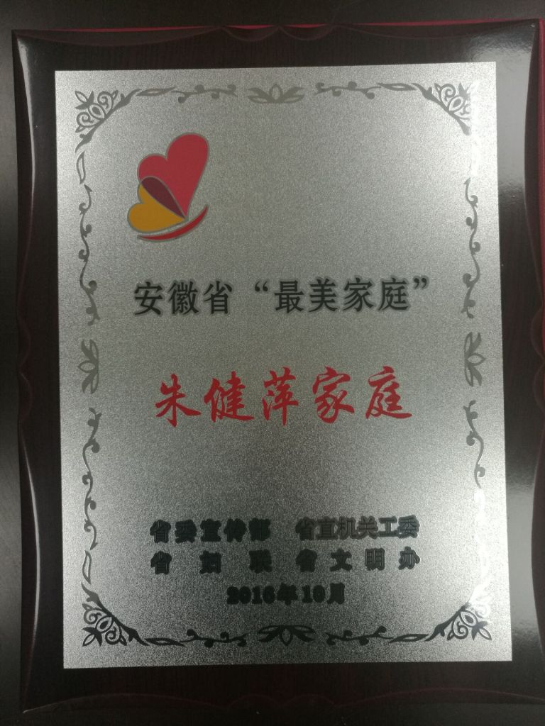 10月17日下午,安徽大劇院傳來喜訊,在由安徽省委宣傳部、省直機關工委、省婦聯、省文明辦聯合主辦的安徽省2016年“最美家庭”“最美家庭成員”頒獎典禮上,安徽建工集團有3戶家庭獲得“最美家庭”5人獲得“最美家庭成員”榮譽,其中,我公司朱健萍家庭、毛萌萌分別被授予安徽省2016年度“最美家庭”“最美家庭成員”榮譽稱號。
