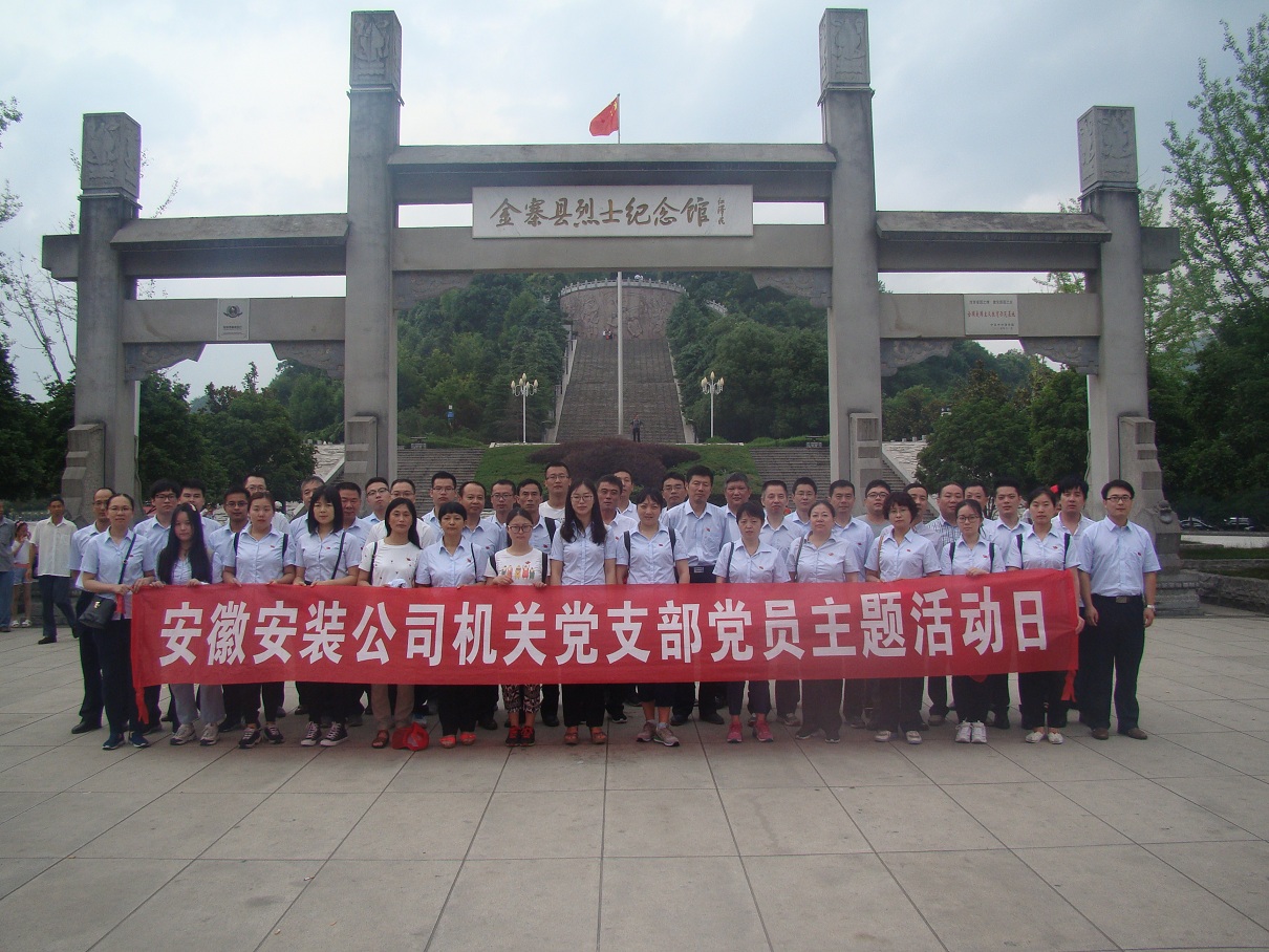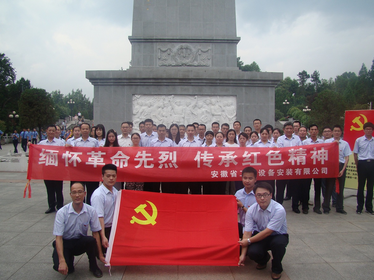 為隆重紀念中國共產黨成立96周年,喜迎黨的十九大,進一步推進“兩學一做”學習教育常態化制度化,深入開展“講政治、重規矩、作表率”專題教育,激勵廣大黨員堅定理想信念,繼承和發揚黨的光榮傳統和優良作風。7月7日,安徽安裝公司組織機關全體黨員赴金寨縣烈士紀念館開展“緬懷革命先烈,傳承紅色精神”黨員主題活動日。公司黨委書記胡六中,紀委書記李寬旭、副總經理李原以及機關黨員同志共50余人參加了活動。