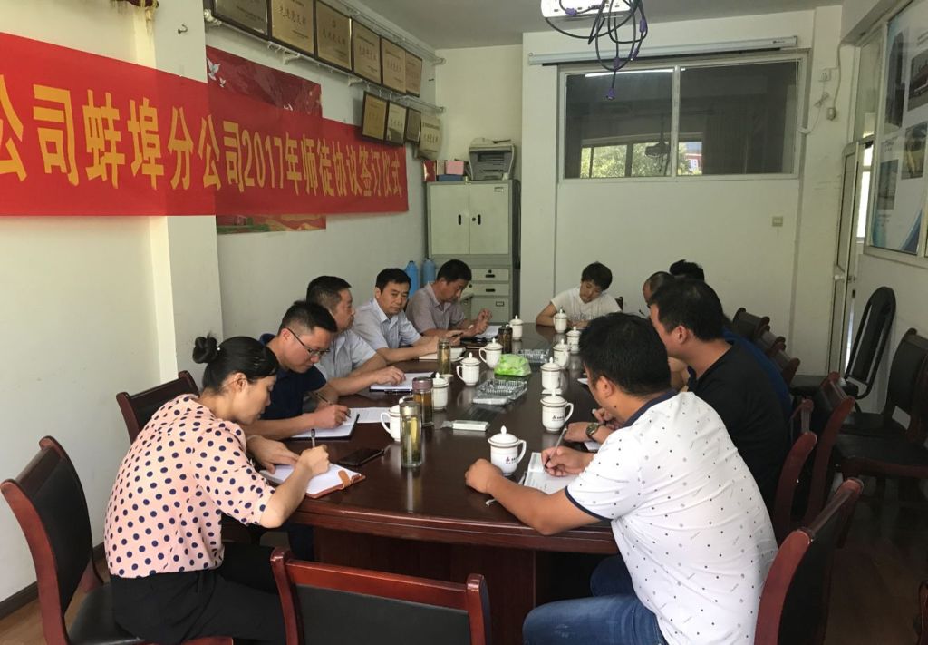 烈日當空,酷熱難忍。7月21日下午,公司董事長、總經理王軍邦,在紀委書記、工會主席李寬旭陪同下蒞臨蚌埠分公司調研指導工作。分公司領導班子及相關部門負責人參加了會議。會議由李寬旭主持。