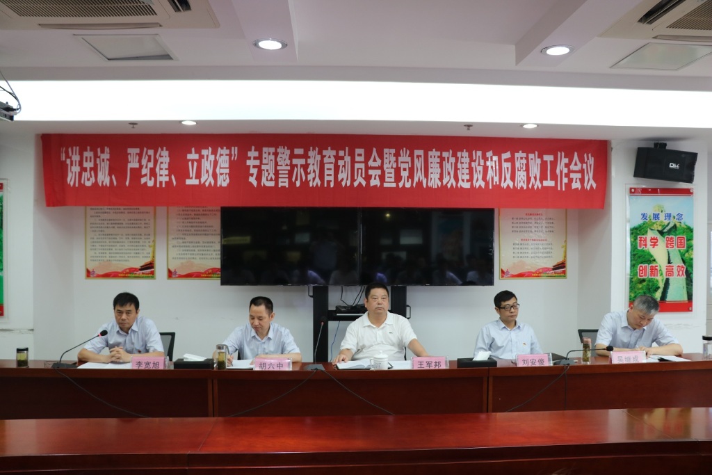 董事長、總經理、黨委副書記王軍邦傳達了集團公司黨委書記、董事長趙時運在集團“講忠誠、嚴紀律、立政德”專題警示教育動員部署會暨2018年黨風廉政建設和反腐敗工作會議的講話精神。并就開展專題警示教育提出了三點要求,一是要提高政治站位,深化思想認識。公司各級領導干部要認真貫徹新時代黨的建設總要求,把黨的政治建設擺在首位,深刻領會開展“講忠誠、嚴紀律、立政德”專題警示教育的重要意義,切實端正思想認識,增強政治自覺,以積極的心態參加警示教育,真正做到身入心入、心動行動。二是突出重點,抓住關鍵環節。要緊緊扭住“學”這個環節,把強化理論武裝貫穿專題警示教育全過程;要緊緊扭住“查”這個環節,自查自糾,進行一次全面的“黨性體檢”;要緊緊扭住“改”這個環節,立行立改,治標治本;要緊緊扭住“樹”這個環節,樹牢“四個意識”,堅定“四個自信”,當好先鋒,作好表率。把強化理論武裝貫穿專題警示教育全過程。三是扛起責任,務求工作實效。要把開展的“講忠誠、嚴紀律、立政德”專題警示教育與學懂弄通做實習近平新時代中國特色社會主義思想和黨的兩學一做學習教育常態化制度化結合起來,與即將開展的“不忘初心,牢記使命”主題教育結合起來,與安徽安裝公司當前各項工作結合起來,為企業凈化優化政治生態,營造良好發展環境提供堅強有力的政治保障。