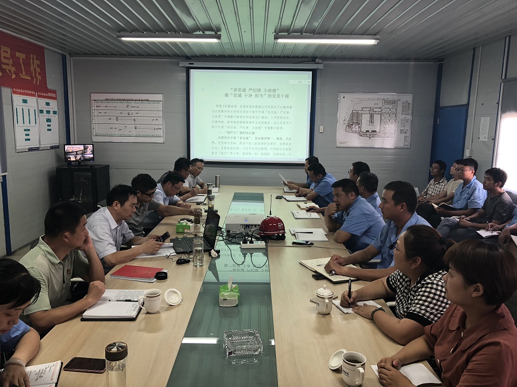 7月31日下午,公司黨委委員、副總經(jīng)理劉安俊,黨委委員、紀委書記、工會主席李寬旭赴安徽中煙蚌埠卷煙廠項目部開展題為:“‘講忠誠、嚴紀律、立政德’做‘忠誠 干凈 擔(dān)當(dāng)’的黨員干部”的大宣講活動,分公司領(lǐng)導(dǎo)班子成員、各部門人員及項目全體員工參加此次活動。