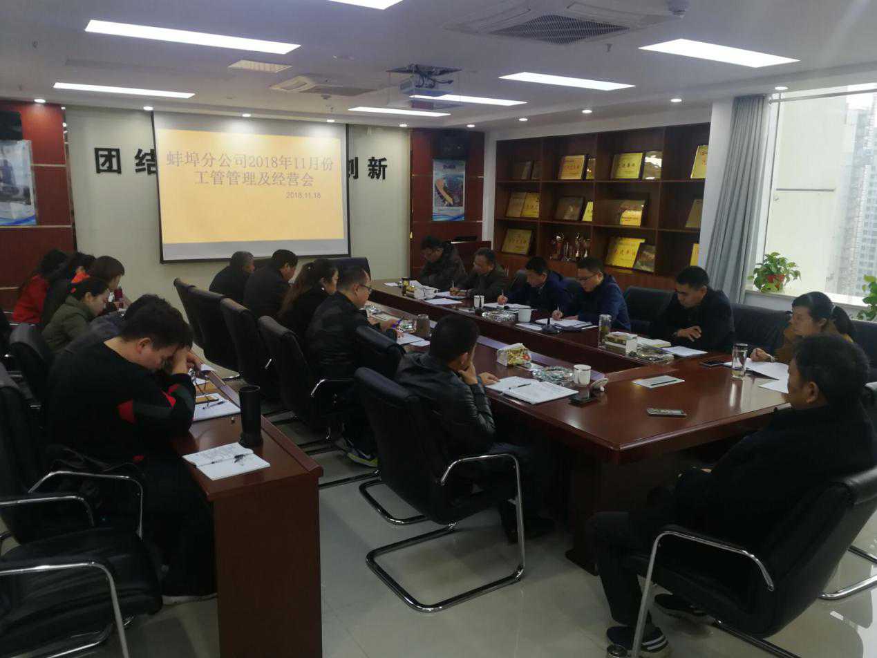 2018年11月18日下午,在蚌埠分公司會議室召開11月份工程管理及經(jīng)營工作會議。分公司領(lǐng)導班子成員、機關(guān)各部門負責人及項目經(jīng)理、聯(lián)營合作單位負責人參加會議,會議由分公司副經(jīng)理張漢軍主持。