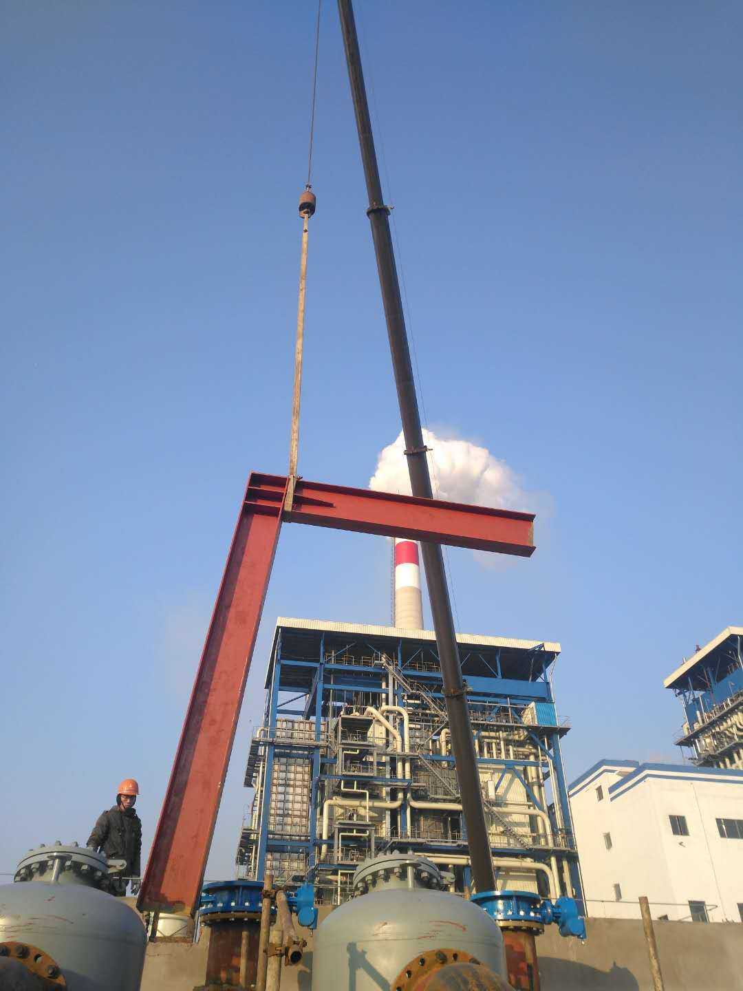 阜陽國禎供熱首站機電安裝工程蒸汽管道施工內(nèi)容包括Φ630蒸汽管道在8.5m的高空架設(shè)、彈簧支架及槽鋼支架的敷設(shè)、與換熱器進出口的對接等;因施工現(xiàn)場存在場地小、作業(yè)面狹窄等諸多困難,蒸汽管道架空敷設(shè)任務(wù)異常艱巨。此次蒸汽管道吊裝,項目部提前合理部署,多次優(yōu)化方案,在各方力量的通力配合下,齊心協(xié)力,圓滿地完成架空敷設(shè)任務(wù),整個吊裝過程平穩(wěn)、安全,獲得了業(yè)主方的贊許與肯定。