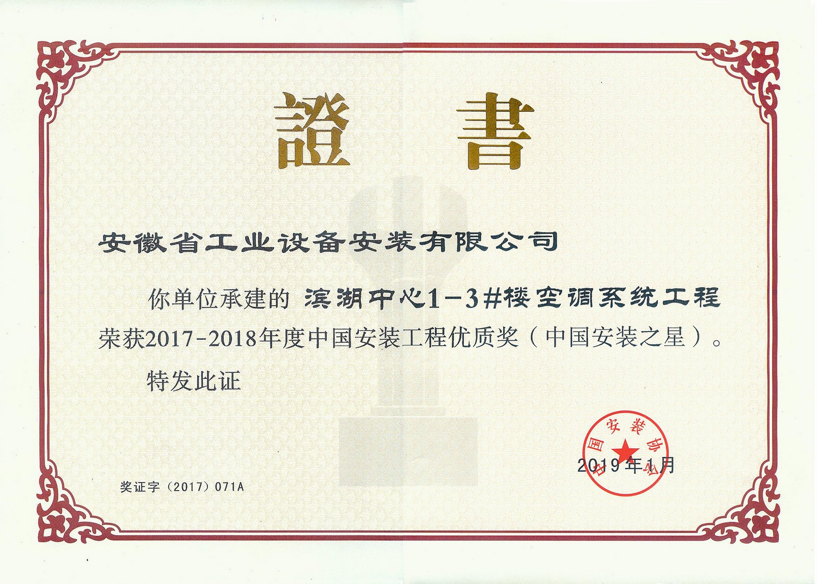 會(huì)上宣讀并表彰了2017-2018年度中國(guó)安裝工程優(yōu)質(zhì)獎(jiǎng)(中國(guó)安裝之星),我公司承建的“濱湖中心1-3#樓空調(diào)系統(tǒng)工程”項(xiàng)目榮獲該項(xiàng)榮譽(yù)。