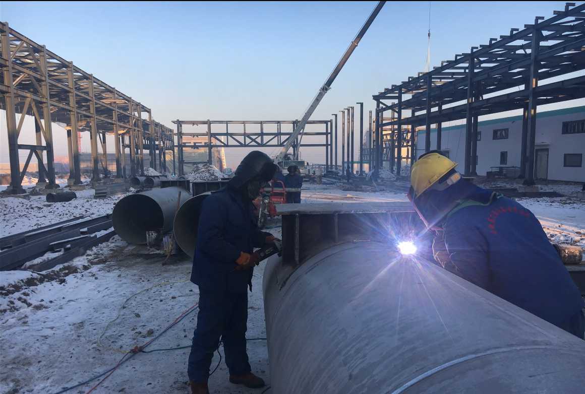 冬日施工中的新疆烏蘇管廊項(xiàng)目現(xiàn)場(chǎng)