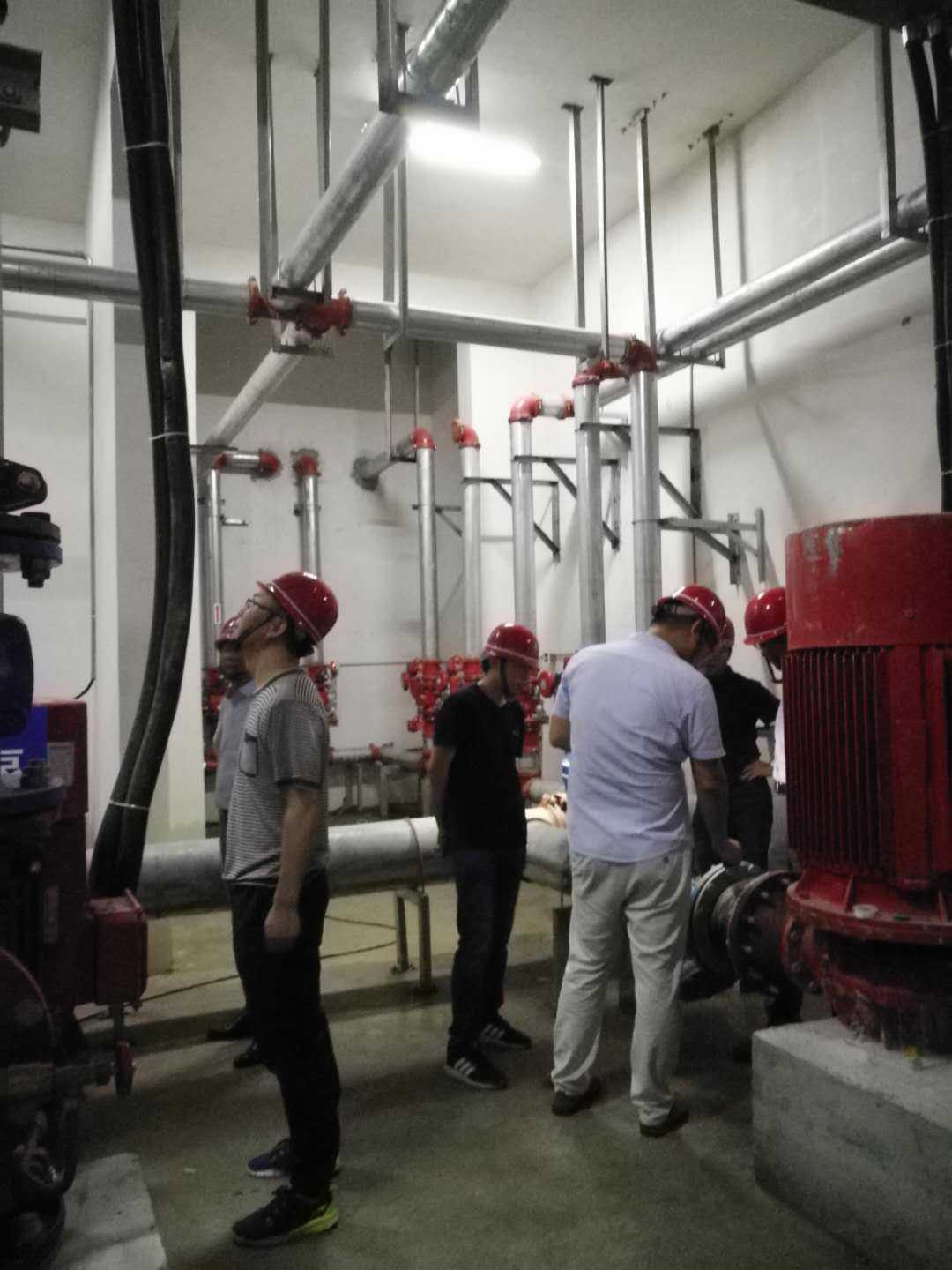 檢查組到達工地后,首先來到施工現場實體查驗了地下車庫消火栓系統、噴淋系統、通風系統、火災自動報警系統的施工安裝質量,對施工班組操作是否規范、安全防護用品佩戴使用是否正確、現場材料存儲、堆放標識是否規范等方面進行了重點檢查。并對地下車庫、泵房的管道和設備安裝存在的問題和不足提出意見和建議,項目部人員認真聽取、詳細作好記錄,與檢查組進行了深入的現場交流。