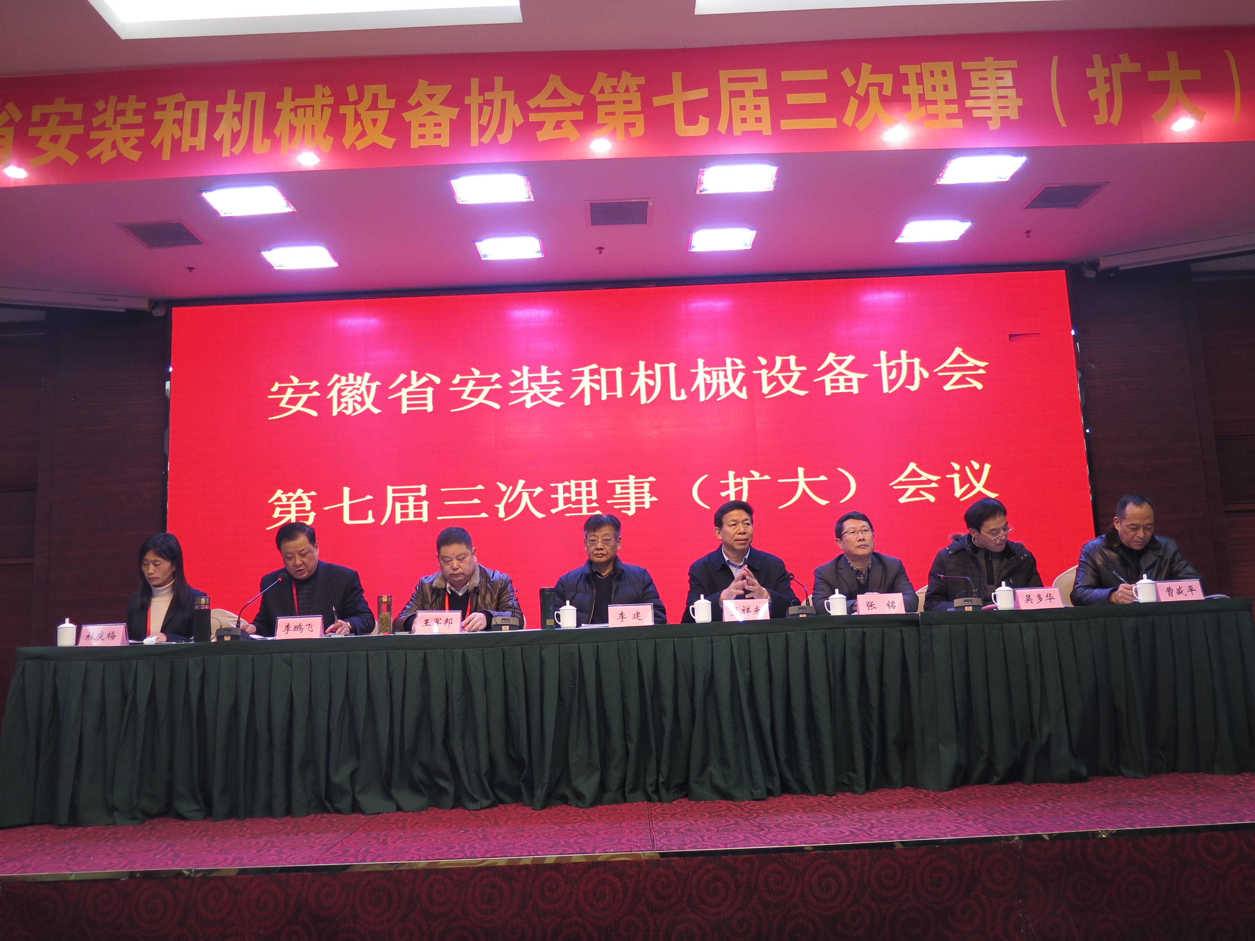 新年伊始,萬(wàn)象更新,2019年1月3日-4日,安徽省安裝和機(jī)械設(shè)備協(xié)會(huì)在安徽蚌埠召開(kāi)第七屆三次理事(擴(kuò)大)會(huì)議。安徽建工集團(tuán)有限公司總經(jīng)理助理、協(xié)會(huì)會(huì)長(zhǎng)、法定代表人王軍邦,駐會(huì)副會(huì)長(zhǎng)李鵬飛,秘書(shū)長(zhǎng)杜慶梅,蚌埠市政協(xié)副主席、秘書(shū)長(zhǎng)孟祥光,蚌埠市住建委黨委書(shū)記、主任張銘,安慶市建筑管理處副主任吳多華,六安市建筑工程質(zhì)量安全監(jiān)督站副站長(zhǎng)曹盛平等領(lǐng)導(dǎo)出席會(huì)議。會(huì)議特邀安徽省政協(xié)常委、原安徽省住房和城鄉(xiāng)建設(shè)廳巡視員李建作建筑行業(yè)轉(zhuǎn)型升級(jí)發(fā)展的專題報(bào)告。各市縣行業(yè)主管部門(mén)負(fù)責(zé)人,副會(huì)長(zhǎng)、理事和會(huì)員單位負(fù)責(zé)人、專家、聯(lián)絡(luò)員及受表彰的企業(yè)代表,受表彰的 2017-2018年度“協(xié)會(huì)之友”、領(lǐng)取職稱證書(shū)的企業(yè)代表等近300人參會(huì)。會(huì)議由副會(huì)長(zhǎng)李鵬飛主持。