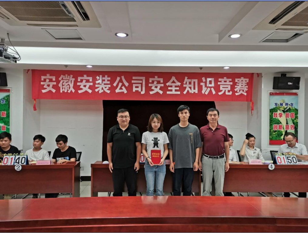 本次競賽由公司安全管理部、工會主辦,機關和所屬分公司公司共9支代表隊參加。經過個人必答題、小組必答題、搶答題及風險題等四種題型的激烈爭奪,最終由安慶分公司代表隊榮獲冠軍,西北分公司代表隊榮獲二等獎,房建(裝飾)分公司和合肥分公司第二代表隊榮獲三等獎。