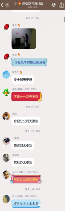 五是防控到位。所屬單位要逐一登記春節放假期間員工去向情況,及時掌握了解他們的身體健康狀況,做好登記、隔離、情況報告等工作。要求所有員工在釘釘日志專項報告當日去向及身體狀況,時刻密切關注員工的身體健康狀況,防止疫情流入。全力做好防控物資保障,不等不靠,多方籌措、及時采購84消毒液、酒精、口罩、額式溫度計等防護消殺物資,做好個人防護,開展衛生全面保潔,消滅衛生死角,進行定期消毒。