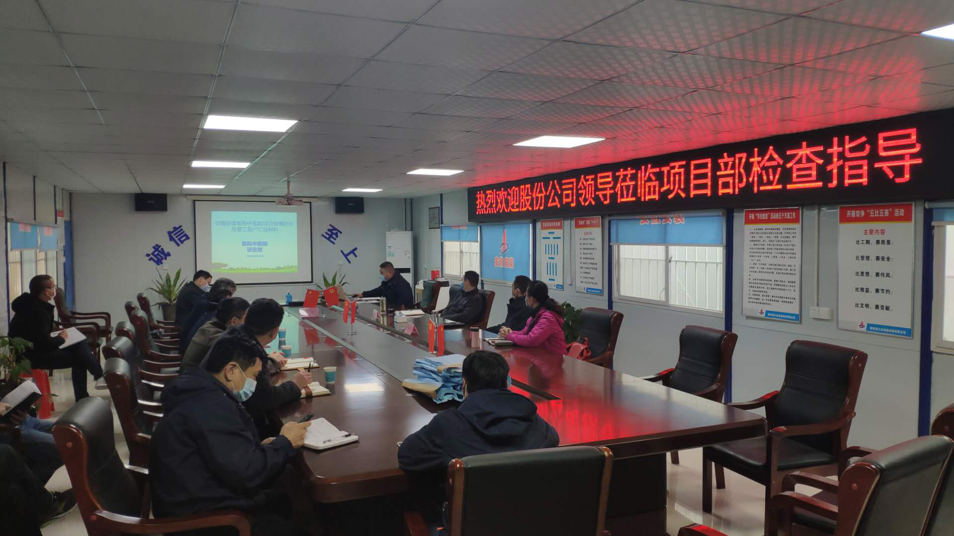 在聽(tīng)取匯報(bào)后,黃代首先充分肯定了項(xiàng)目部在疫情防控、復(fù)工復(fù)產(chǎn)等方面所做的工作,強(qiáng)調(diào)在做好疫情防控工作的同時(shí),要全力實(shí)現(xiàn)達(dá)產(chǎn)超產(chǎn),并對(duì)項(xiàng)目部下一步防疫和生產(chǎn)工作提出要求:一是高度重視疫情防控工作,在安全復(fù)工的同時(shí)抓機(jī)遇搶產(chǎn)值,全力實(shí)現(xiàn)項(xiàng)目產(chǎn)值目標(biāo)任務(wù);二是持續(xù)強(qiáng)化黨建引領(lǐng)作用,發(fā)揮好黨員在項(xiàng)目建設(shè)和疫情防控工作中的先鋒模范帶頭作用,做到越是艱險(xiǎn)越向前,始終牢記宗旨,不忘初心,讓黨旗在防疫一線(xiàn)高高飄揚(yáng);三是要抓好生活區(qū)域衛(wèi)生防疫工作,定時(shí)消殺,食堂嚴(yán)格執(zhí)行分餐制,錯(cuò)時(shí)就餐,最大限度地減小人員聚集;四是切實(shí)做好復(fù)工返崗人員隔離觀(guān)察,做好復(fù)工人員的動(dòng)態(tài)管理工作,嚴(yán)格執(zhí)行集團(tuán)和屬地有關(guān)疫情防控規(guī)定,從源頭上防范疫情發(fā)生。