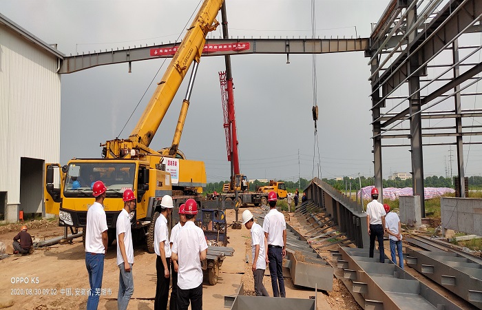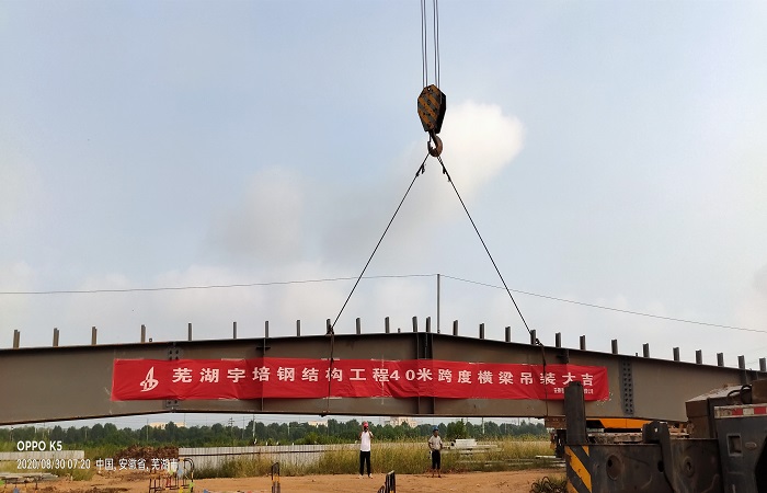 伴隨著現(xiàn)場人員緊張而又激動的心情,第一拼40米大跨度的重型橫梁徐徐升起,并精準吊裝就位,這意味著經(jīng)過100多天的奮戰(zhàn)后,蕪湖項目鋼結(jié)構(gòu)工程跨越了施工難度節(jié)點和取得了階段性突破,同時標志著該項目鋼結(jié)構(gòu)工程最后的主體完工已邁出至關(guān)重要的一步。