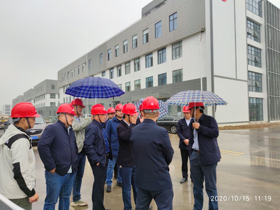 10月15日上午,建工控股黨委副書記牛曙東冒雨來到安徽安裝界首市出口企業培育基地一期附屬工程和水利市政道路項目進行調研,集團黨委工作部副部長王詩旵、總包單位安徽水利黨委副書記戴樹明及安徽水利一分公司、安徽安裝項目部相關人員參加調研。
