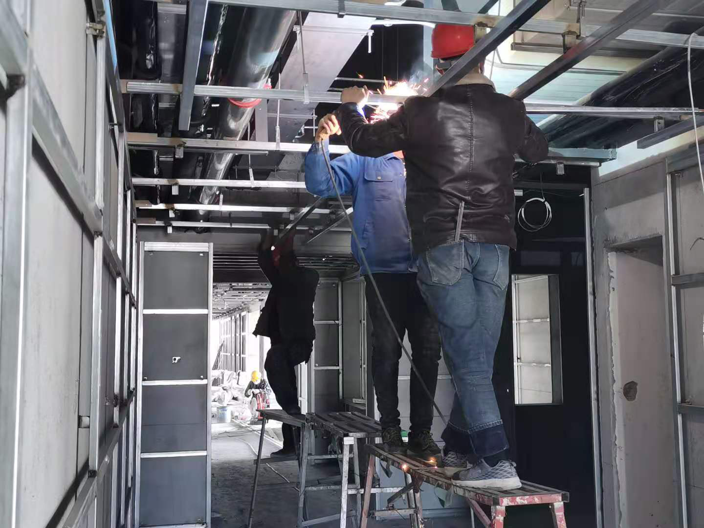 目前的醫(yī)技樓和門診樓里,工人正在進行過道吊頂龍骨施工,通過定吊點,打吊絲,將副龍骨通過扣件與主龍骨連接,最后加裝GRG板;通過項目部的合理協(xié)調(diào),同步進行過道、樓梯間及墻面的批膩子工序。為了做好疫情常態(tài)化下保證冬季施工安全,工人們鉚足干勁做好安全防護措施,加班加點搶工期保目標(biāo),管理人員堅守施工一線調(diào)度現(xiàn)場工作,為大干四季度全力以赴趕進度,確保年度目標(biāo)任務(wù)圓滿完成。