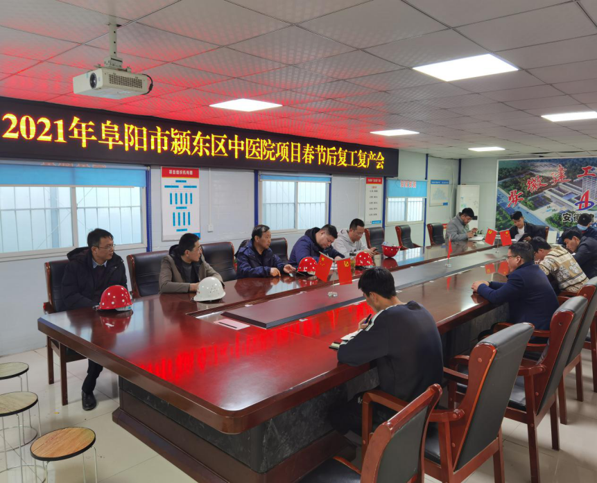 二是“高效推進(jìn)”。2021年2月19日(農(nóng)歷正月初八),項(xiàng)目部主要管理人員全員到崗,公司副總經(jīng)理高飛深入項(xiàng)目一線對(duì)現(xiàn)場(chǎng)進(jìn)行了全面的復(fù)工巡查,組織召開了“2021年阜陽市潁東區(qū)中醫(yī)院項(xiàng)目春節(jié)后復(fù)工復(fù)產(chǎn)會(huì)”會(huì)上,高飛對(duì)推進(jìn)節(jié)后復(fù)工復(fù)產(chǎn)、做好疫情防控等工作提出具體要求。項(xiàng)目部與現(xiàn)場(chǎng)管理辦公室、建設(shè)、監(jiān)理等參建單位共同組織召開“阜陽市潁東區(qū)中醫(yī)院PPP項(xiàng)目2021年春節(jié)后復(fù)工復(fù)產(chǎn)工作會(huì)議”,對(duì)春節(jié)后復(fù)工復(fù)產(chǎn)工作進(jìn)行全面部署,項(xiàng)目經(jīng)理許杰在會(huì)上作出表態(tài),提出“復(fù)工即搶工,開工即大干”的工作精神,對(duì)節(jié)后如何有序開展復(fù)工復(fù)產(chǎn)作了具體安排。