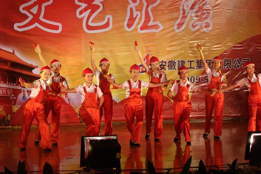 在文藝匯演中,集團機關及下屬單位參演節目17個,或舞蹈,或小品,或服裝秀,亮麗紛呈,掌聲不斷。我公司員工自編自演的參演作品——音樂快板《建工禮贊》第八個出場,質樸、熱烈、喜慶,獲得9.84的全場最高分,繼上屆藝術節琴書說唱《大漠邊陲譜新篇》榮獲一等獎后,再獲集團公司文藝匯演一等獎,今天晚上將代表建工集團參加省屬企業國慶文藝晚會。