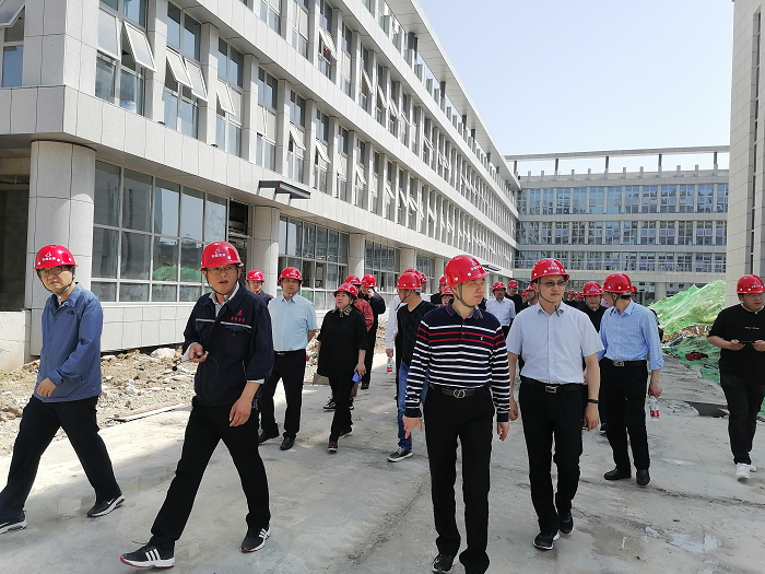 與會人員首先現場觀摩了阜陽市潁東中醫院項目,在項目經理徐明東的講解和帶領下,大家邊走邊看邊交流,詳細了解了項目實施情況、施工的重難點、進度管控措施。