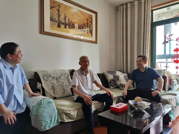 6月30日,黃代來到88歲老黨員胡桂壽家。胡桂壽1949年4月入伍,1956年5月加入中國共產(chǎn)黨,1952年參加抗美援朝戰(zhàn)爭,1965年參加抗美援越戰(zhàn)爭。黃代認(rèn)真傾聽胡老回顧他難忘的戰(zhàn)斗經(jīng)歷,一起重溫我們黨百年光輝歷程并親切詢問了胡老的家庭、生活和身體健康情況,代表集團(tuán)黨委向胡老致以誠摯問候和衷心祝福,對胡老為黨、為人民、為公司默默奉獻(xiàn),在平凡的崗位上做出的不平凡的貢獻(xiàn)表示衷心的感謝。黃代還向胡老介紹了近年來集團(tuán)公司的發(fā)展變化,希望胡老多建言獻(xiàn)策,齊心協(xié)力推動安徽建工高質(zhì)量發(fā)展。