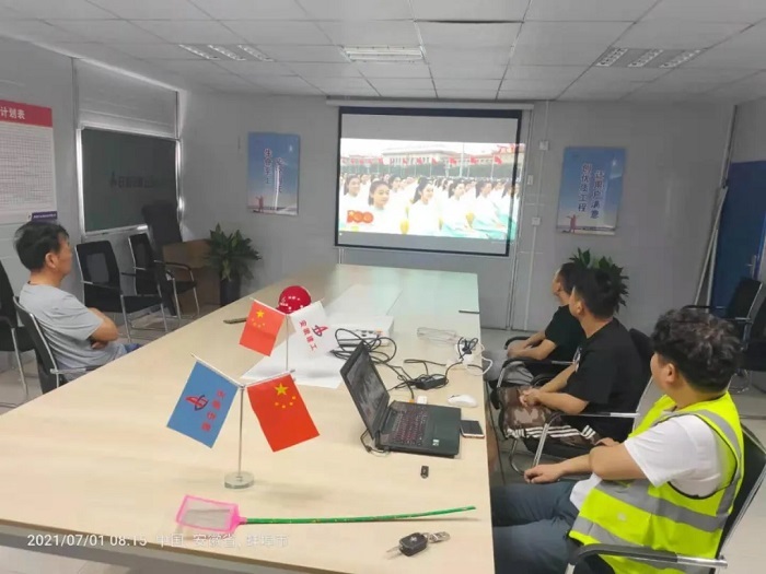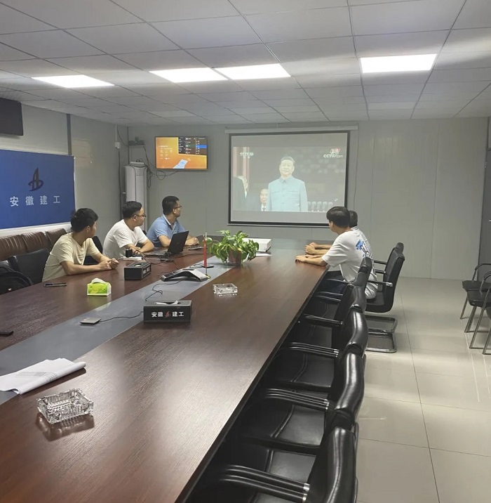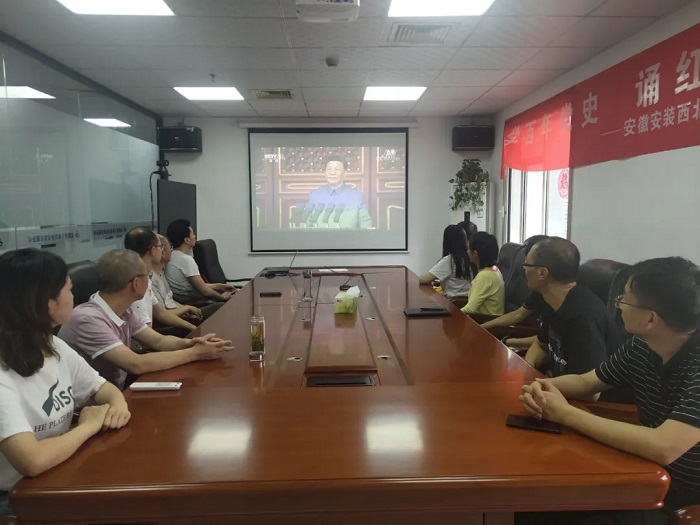 上午8點整,慶祝中國共產黨成立100周年大會在北京天安門廣場隆重舉行,中共中央總書記、國家主席、中央軍委主席習近平發表重要講話。與此同時,安徽安裝所屬各單位、各基層黨組織、各項目一線紛紛第一時間組織職工群眾收聽收看大會直播。
