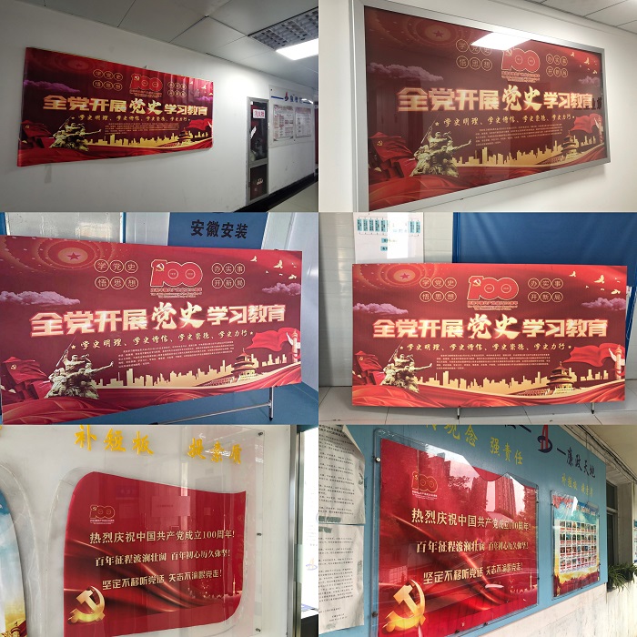 公司黨委第一時間編印專刊宣傳板報下發至所屬各單位和基層項目一線,用好企業網站、微信公眾號、電子屏、宣傳欄和所屬各單位、各項目部所有宣傳陣地,在公司網站、微信公眾號先后開設“百個瞬間說百年”“黨史學習教育專欄系列報道”“榜樣的力量——安徽安裝公司先進人物先進事跡展播”“記錄奮進力量—安徽安裝公司基層一線事跡展播”等專欄進行專題宣傳,大力營造“學習黨史有熱情,干事創業有激情”的良好氛圍,合肥分公司黨支部舉辦黨史學習教育主題攝影大賽,努力營造悟初心、守初心、踐初心的強大聲勢。