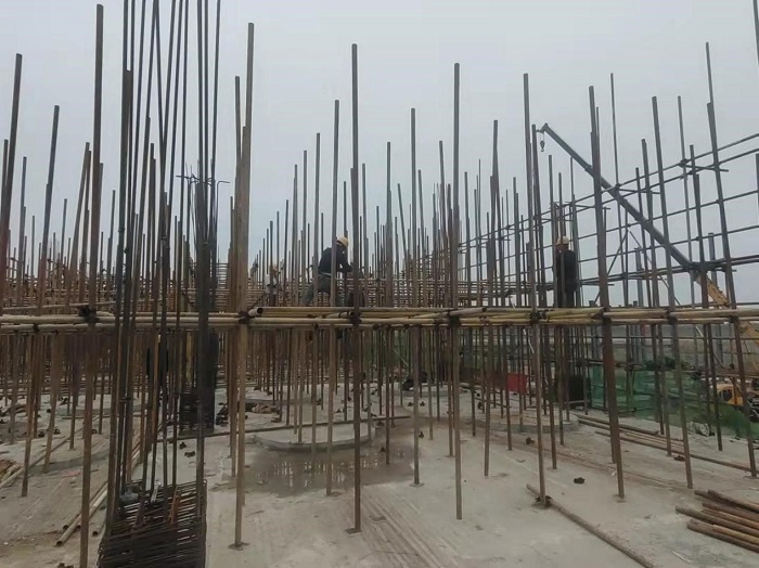 發酵車間C區鋼結構區域,吊裝作業正在如火如荼進行;B區滿堂腳手架緊張搭設,鋼筋工頂著烈日進行鋼筋綁扎,投料車間兩臺挖機聯動,進行管廊支架基礎基坑開挖,控制車間正在忙忙碌碌進行內墻二次結構砌筑。各個車間有條不紊的忙碌著,整個項目現場一片火熱,迅速掀起“比、學、趕、幫、超”施工高潮!