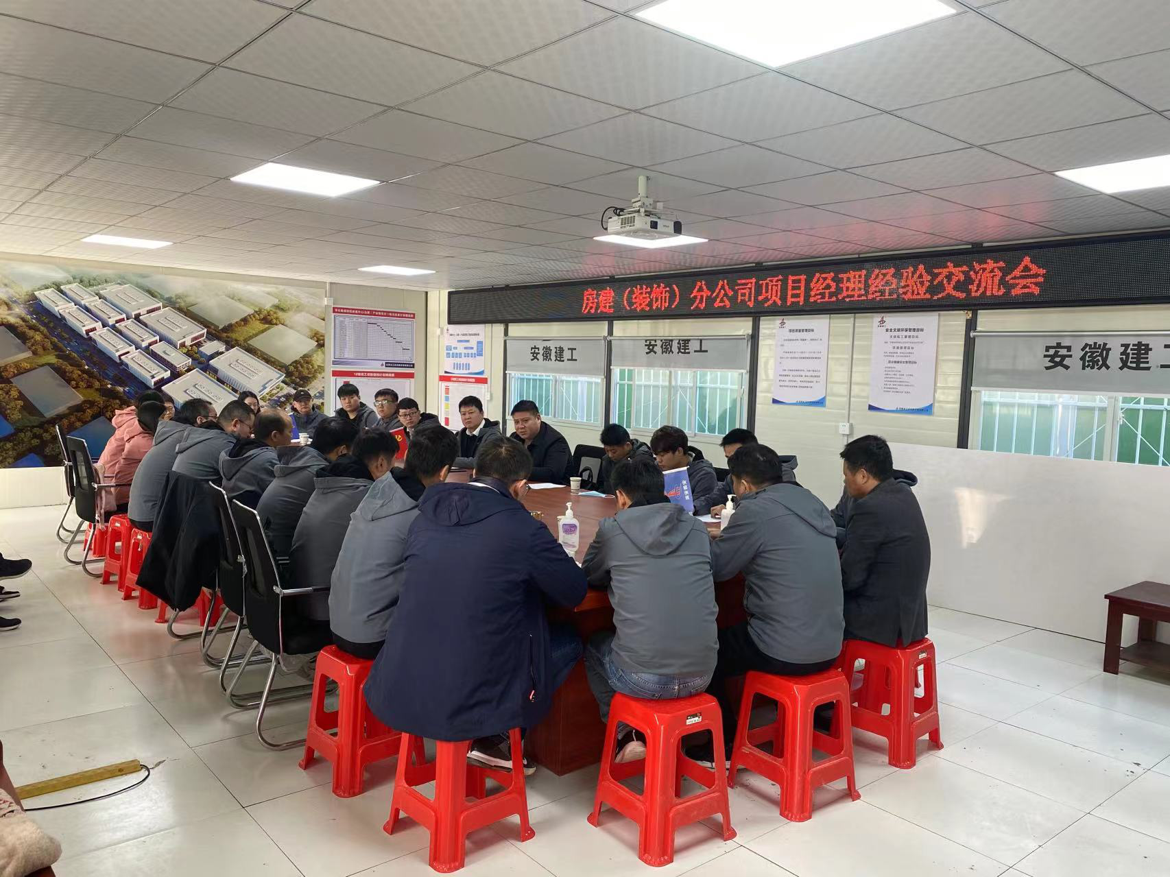 為進一步加強分公司在建項目之間的交流溝通,進一步提升項目管理者的綜合業務能力,分享在項目管理實踐中獲得的經驗,11月24日上午,房建(裝飾)分公司在合肥潤迅項目部組織召開項目經理經驗交流會。分公司領導班子成員、機關全體職工、各在建項目經理及項目職工代表參加了本次會議。此次會議由分公司黨支部書記王偉主持。
