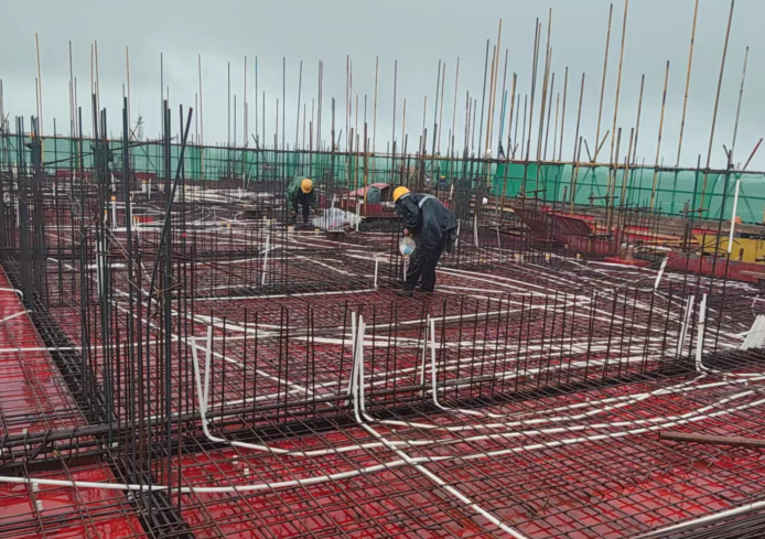 圖為舒城青墩小區項目高層住宅及地庫的水電及消防工程安裝工程正在搶抓管線預埋。