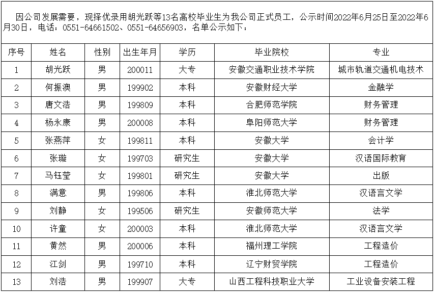 2022高校畢業生公示(13人)