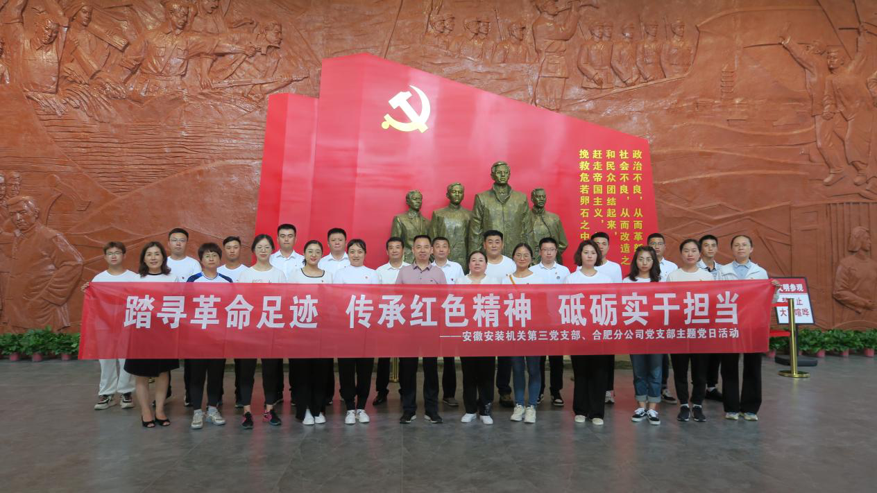 為熱烈慶祝中國共產黨成立101周年,深入學習貫徹習近平新時代中國特色社會主義思想,持續(xù)推動黨史學習教育走深走實。7月8日,機關第三黨支部和合肥分公司黨支部聯(lián)合開展以“踏尋革命足跡 傳承紅色精神 砥礪實干擔當”為主題的黨日活動,公司黨委書記、董事長胡六中,副總經理李原以普通黨員身份參加活動。