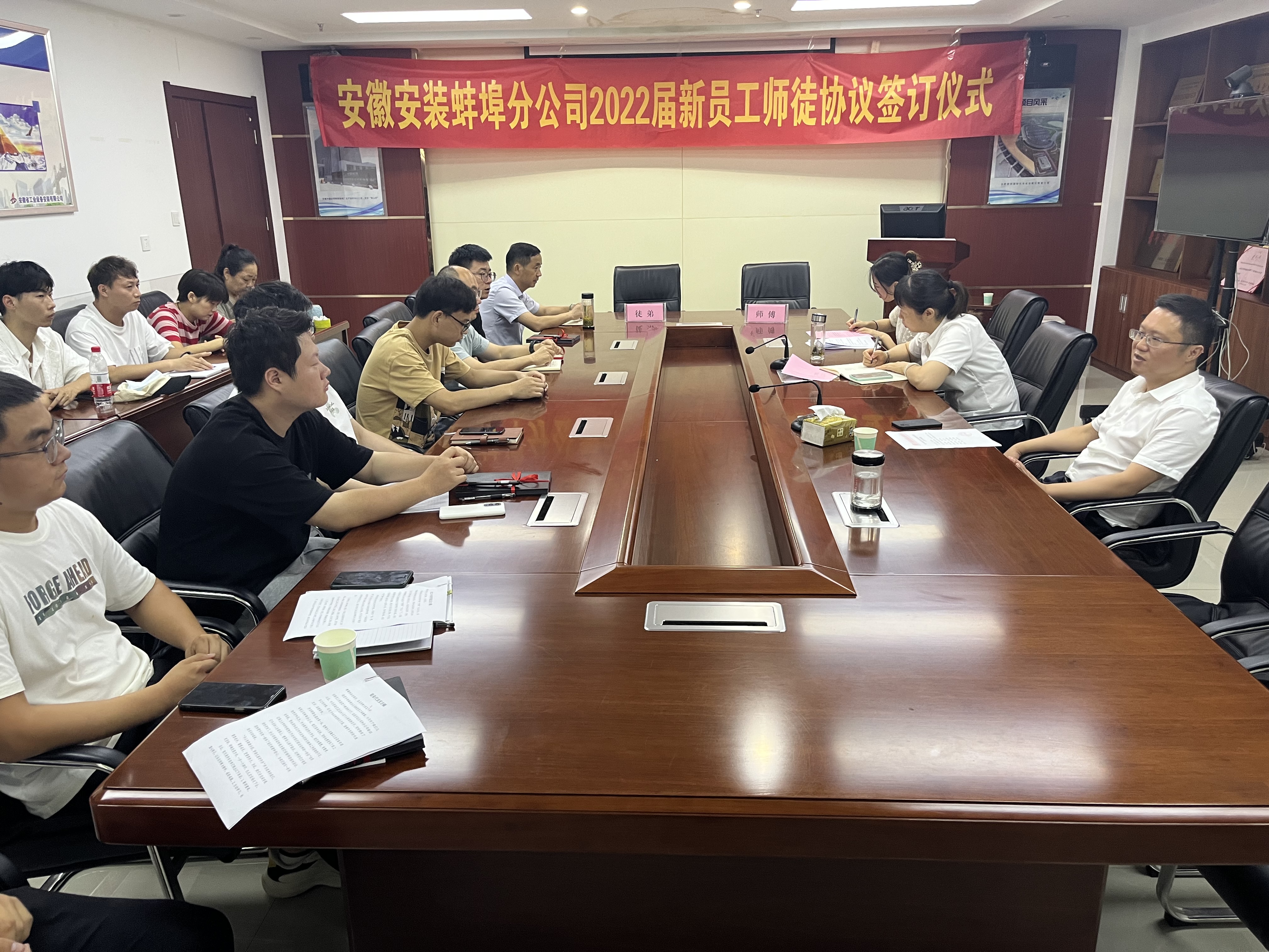 為使新員工盡快成長成才,加速人才培養(yǎng),加強分公司人才梯隊建設(shè)。7月15日下午,蚌埠分公司黨支部舉行了“2022屆新員工師徒結(jié)對”簽訂儀式。分公司黨政主要領(lǐng)導(dǎo)、部門負(fù)責(zé)人、項目經(jīng)理、六對結(jié)對師徒參加了此次會議。