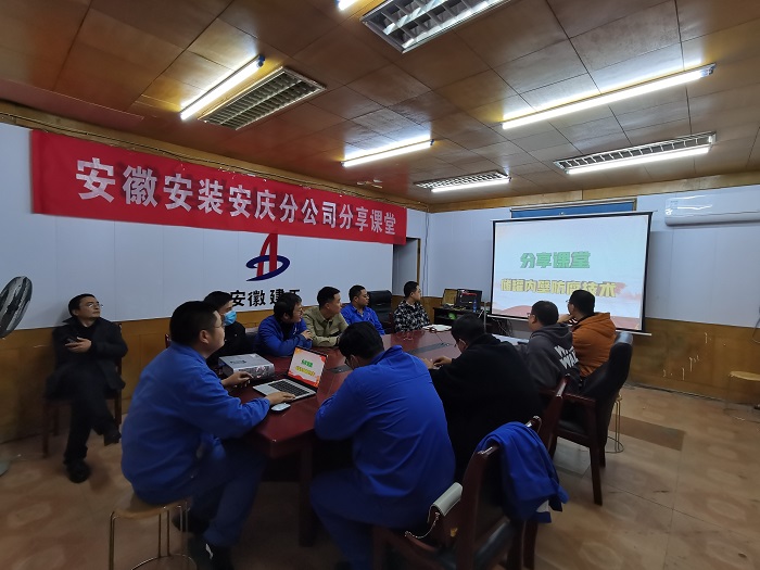11月28日下午,安慶分公司在馬山石化項目部開展了“儲罐內壁防腐技術”專題分享課堂活動,由分公司項目副經理楊垚授課,項目部全體員工參加。