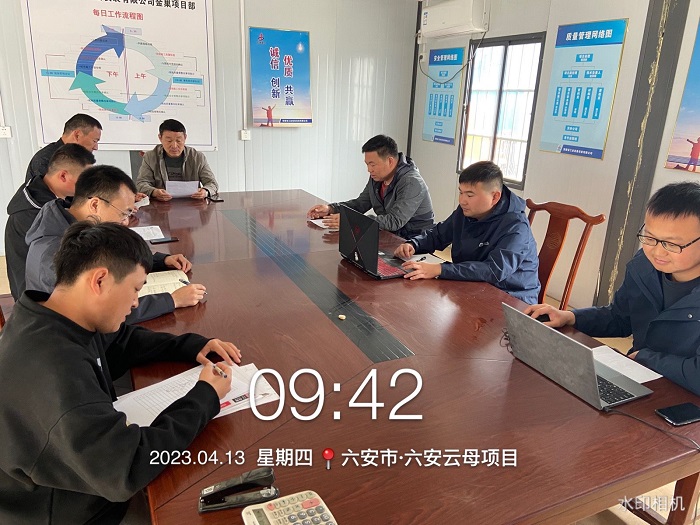 4月13日上午,蚌埠分公司“三個(gè)基地”項(xiàng)目負(fù)責(zé)人鄭衡赴“六安霍邱金巢云母”項(xiàng)目開(kāi)展項(xiàng)目經(jīng)理學(xué)習(xí)交流交叉上課活動(dòng),項(xiàng)目全體管理人員參加此次學(xué)習(xí)交流活動(dòng)。