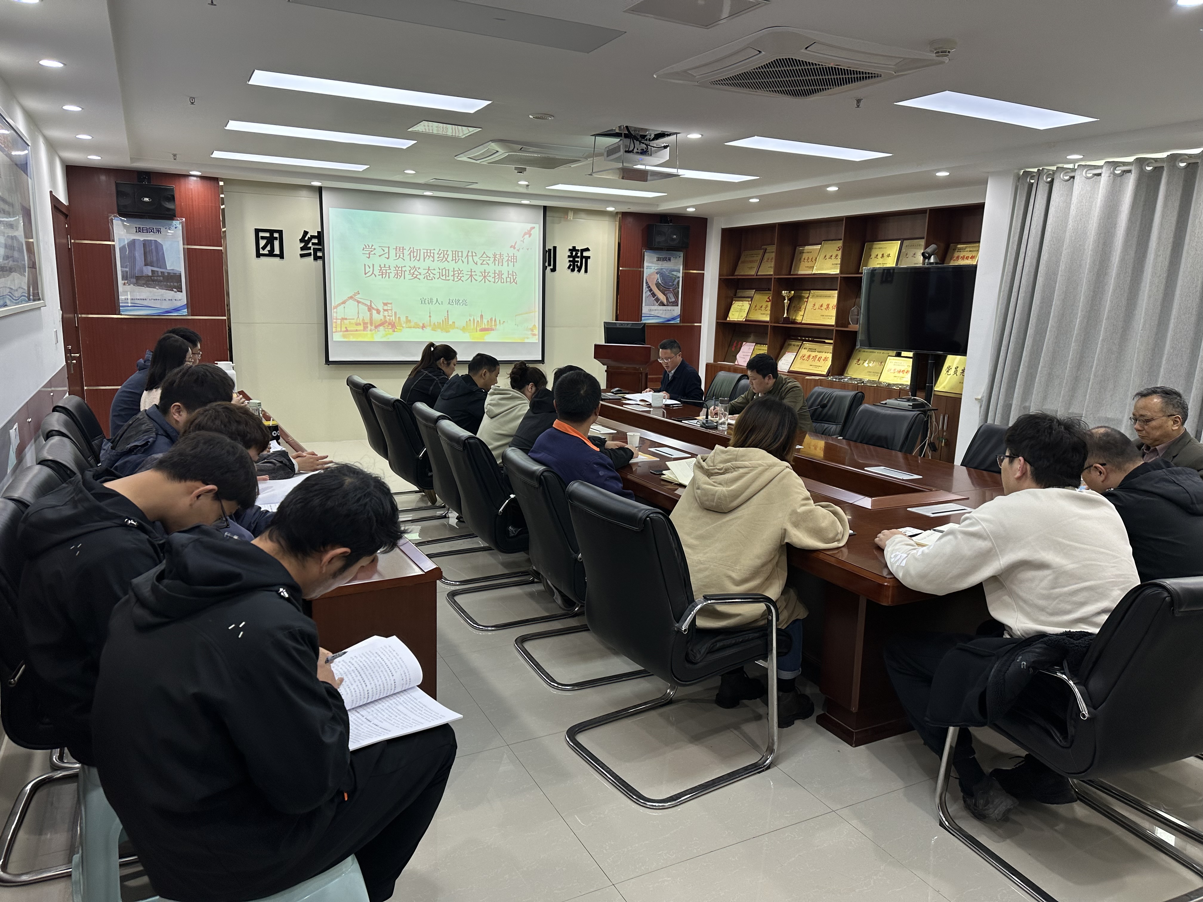 為持續(xù)抓好黨的二十大精神學(xué)習(xí),貫徹落實(shí)兩級(jí)職代會(huì)精神,4月24日下午,蚌埠分公司黨支部組織召開(kāi)專(zhuān)題學(xué)習(xí)會(huì),分公司經(jīng)理、黨支部副書(shū)記趙銘亮就深入學(xué)習(xí)兩級(jí)職代會(huì)精神上專(zhuān)題黨課,分公司機(jī)關(guān)全體員工、三個(gè)基地項(xiàng)目、康寧項(xiàng)目及馬鞍山項(xiàng)目員工參加學(xué)習(xí)會(huì),會(huì)議由分公司黨支部書(shū)記、副經(jīng)理王偉主持。