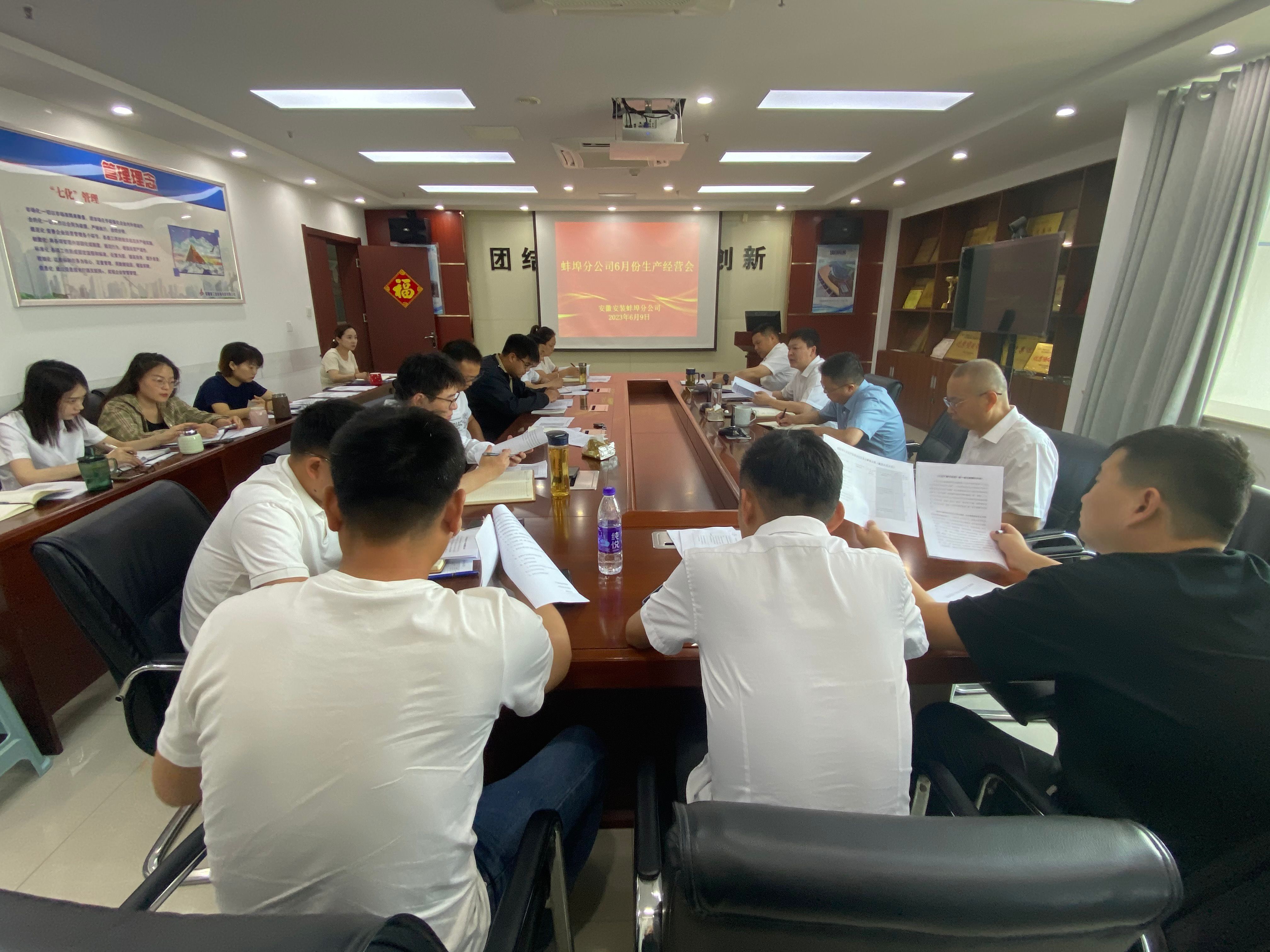 6月9日上午,蚌埠分公司組織召開6月份生產經營會,分公司領導班子成員、所屬各項目部、機關各部門負責人及工程管理部全體員工參加會議,會議由分公司副經理郭洋主持。
