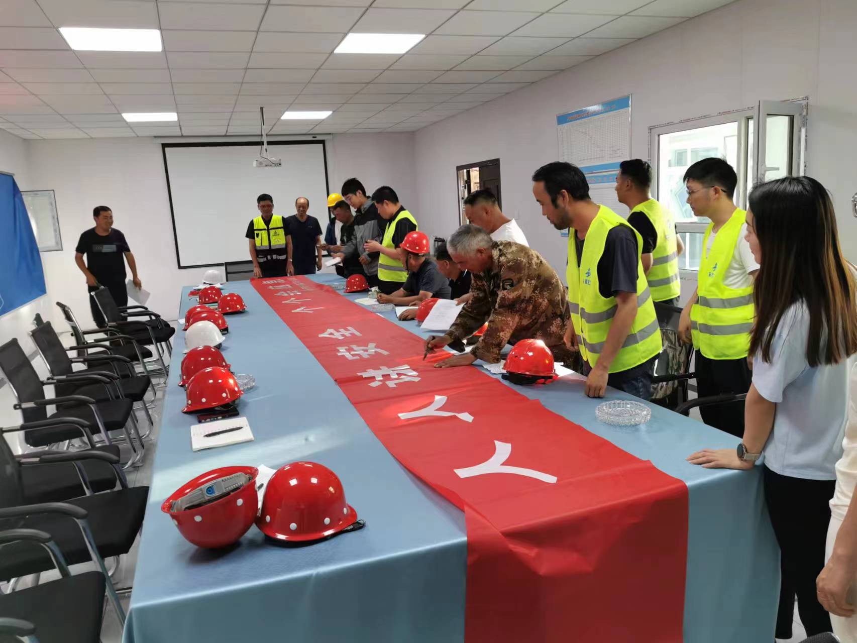 啟動(dòng)儀式上,項(xiàng)目部安全員向大家宣讀此次安全月活動(dòng)的活動(dòng)方案,播放安全教育、警示類視頻,并著重講解施工現(xiàn)場(chǎng)及生活區(qū)一些常見(jiàn)而易忽視的安全隱患及防范措施,提升管理人員在面對(duì)風(fēng)險(xiǎn)時(shí)的安全意識(shí),并指出確保安全是各類生產(chǎn)活動(dòng)的首要任務(wù),全員要樹(shù)立安全第一、生命至上的理念。分公司所屬項(xiàng)目部管理人員要嚴(yán)格落實(shí)安全生產(chǎn)責(zé)任制,樹(shù)牢安全紅線意識(shí),通過(guò)宣傳教育、實(shí)戰(zhàn)演練、隱患排查等方式,讓分公司全體員工和所屬項(xiàng)目所有參建人員更積極主動(dòng)參與到各項(xiàng)安全生產(chǎn)活動(dòng)中來(lái),清楚各自在安全體系管理中的責(zé)任及意義,努力營(yíng)造一個(gè)“人人要安全、人人管安全”的良好安全管理氛圍,提升分公司安全管理水平。在儀式的最后,所有人員在安全員的帶領(lǐng)下莊嚴(yán)宣誓,并在印有“人人講安全,個(gè)個(gè)會(huì)應(yīng)急”的橫幅上進(jìn)行安全承諾簽名。