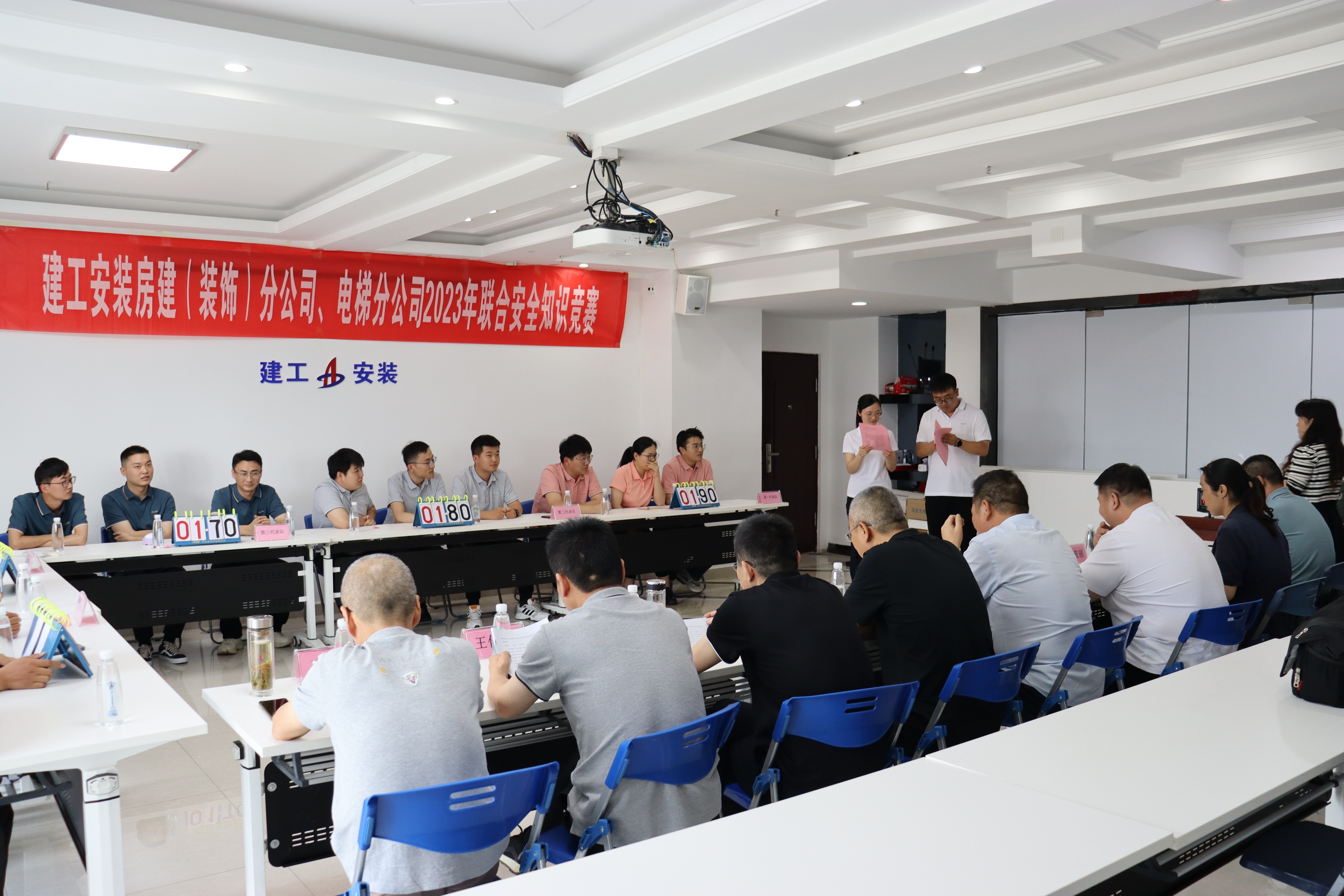 為深入貫徹黨的二十大精神和習(xí)近平總書記關(guān)于安全生產(chǎn)重要講話精神,近日,房建(裝飾)分公司、電梯分公司以“人人講安全、個個會應(yīng)急”為主題,聯(lián)合舉辦安全知識競賽活動。公司黨委委員、副總經(jīng)理董雙武,工程管理部(安全管理部)有關(guān)負責同志出席活動。