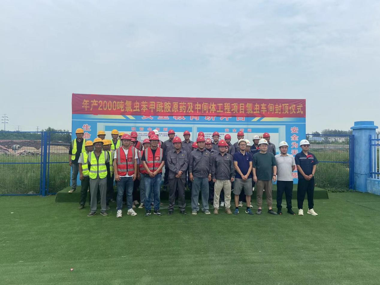 8月31日,蚌埠市淮上區化工園區內年產2000噸氯蟲苯甲酰胺原藥及中間體項目氯蟲一號車間,伴隨著最后一方混凝土澆筑到位,聳立的車間主體被“封頂大吉”的大紅條幅和紅色祝福標語裝點得格外喜慶!建設單位、監理單位、施工單位等共同參加了封頂儀式。