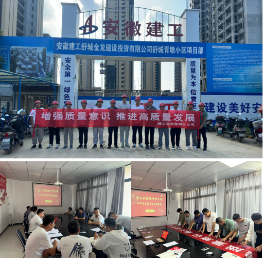 為落實(shí)好2023年全國“質(zhì)量月”活動要求,近日,建工安裝滁州分公司分別在舒城片區(qū)項(xiàng)目、光明徐小牧場、阜南污水處理廠等項(xiàng)目陸續(xù)舉辦了2023年“質(zhì)量月”活動啟動儀式。分公司領(lǐng)導(dǎo)班子成員、分公司相關(guān)部門負(fù)責(zé)人、項(xiàng)目部全體人員參加了啟動儀式。
