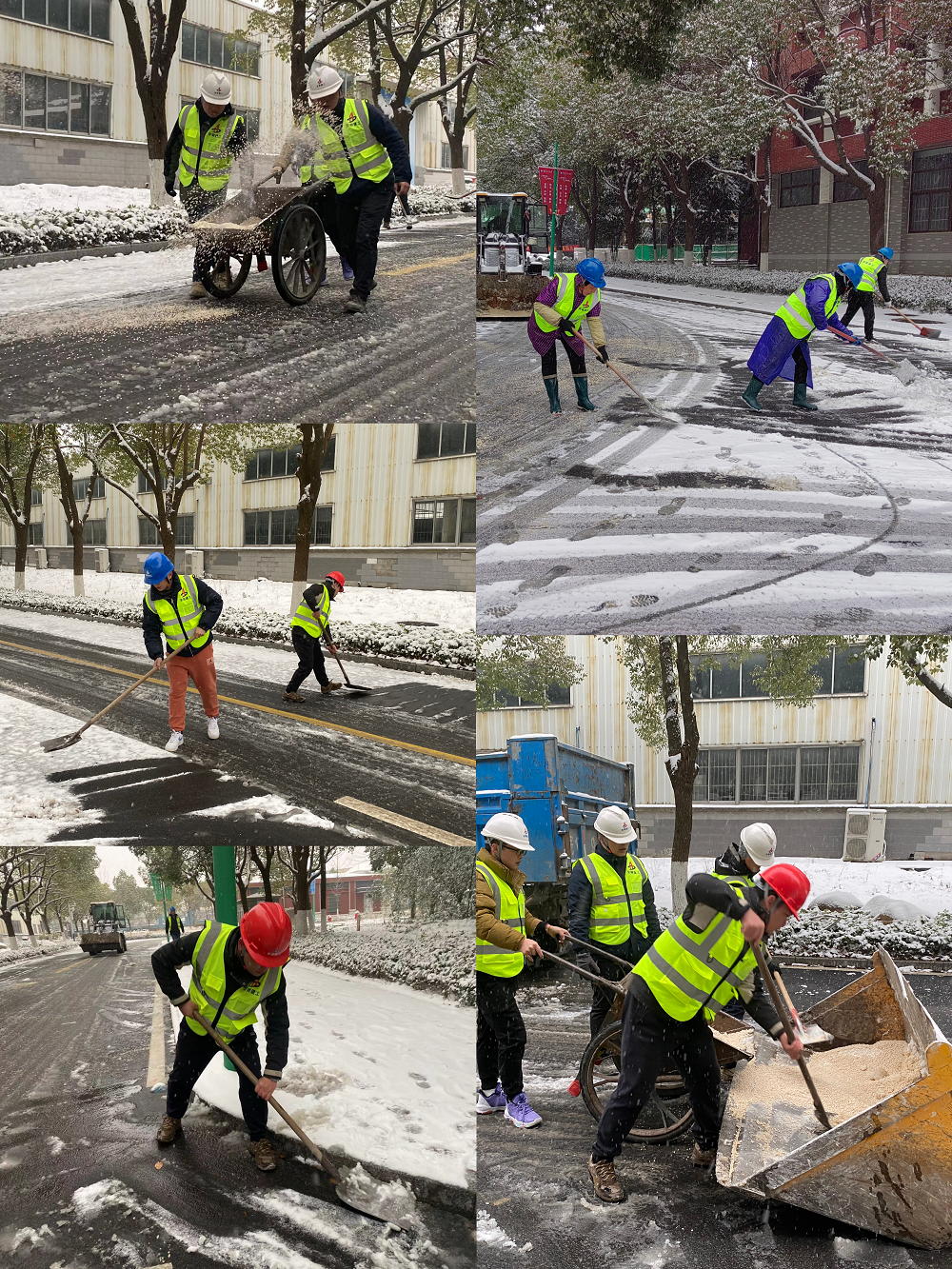 在安徽理工大學(合肥高等研究院)維修改造項目(二期)施工現場,肆虐的雪花紛紛揚揚飄落,凜冽的寒風一陣陣刮過。為確保項目生產正常進行,項目部全體人員不畏嚴寒,齊心協(xié)力破雪除冰,及時消除安全隱患;同時,項目部還加強現場管理、強化生產安全防護、嚴密監(jiān)控天氣變化,為確保工程進度和質量有序推進保駕護航。