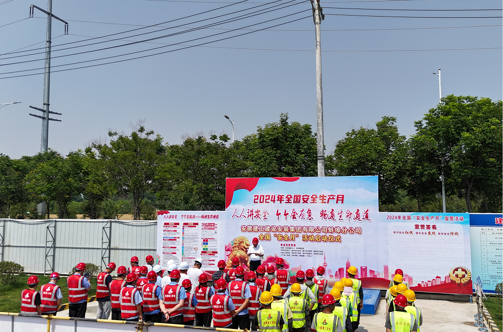 正值第23個全國“安全生產月”到來之際,5月31日上午,蚌埠分公司在宿州深巖項目開展“安全生產月”活動啟動儀式,分公司領導班子、部門負責人、各項目班子及安全負責人、深巖項目業主及監理代表、項目部全體員工50余人參加本次啟動儀式。