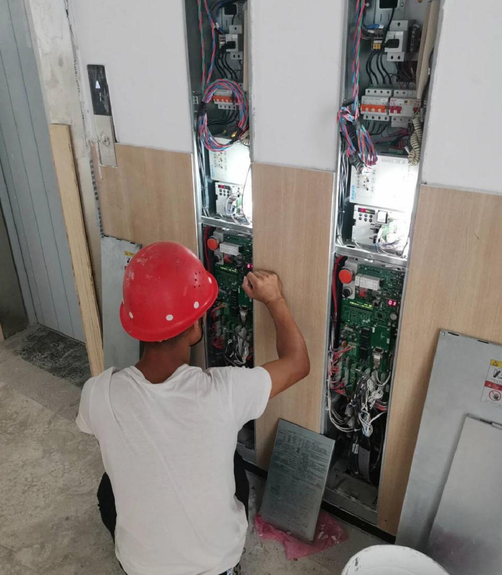 蚌埠自貿區山香學校項目施工人員正在進行無機房電梯檢驗