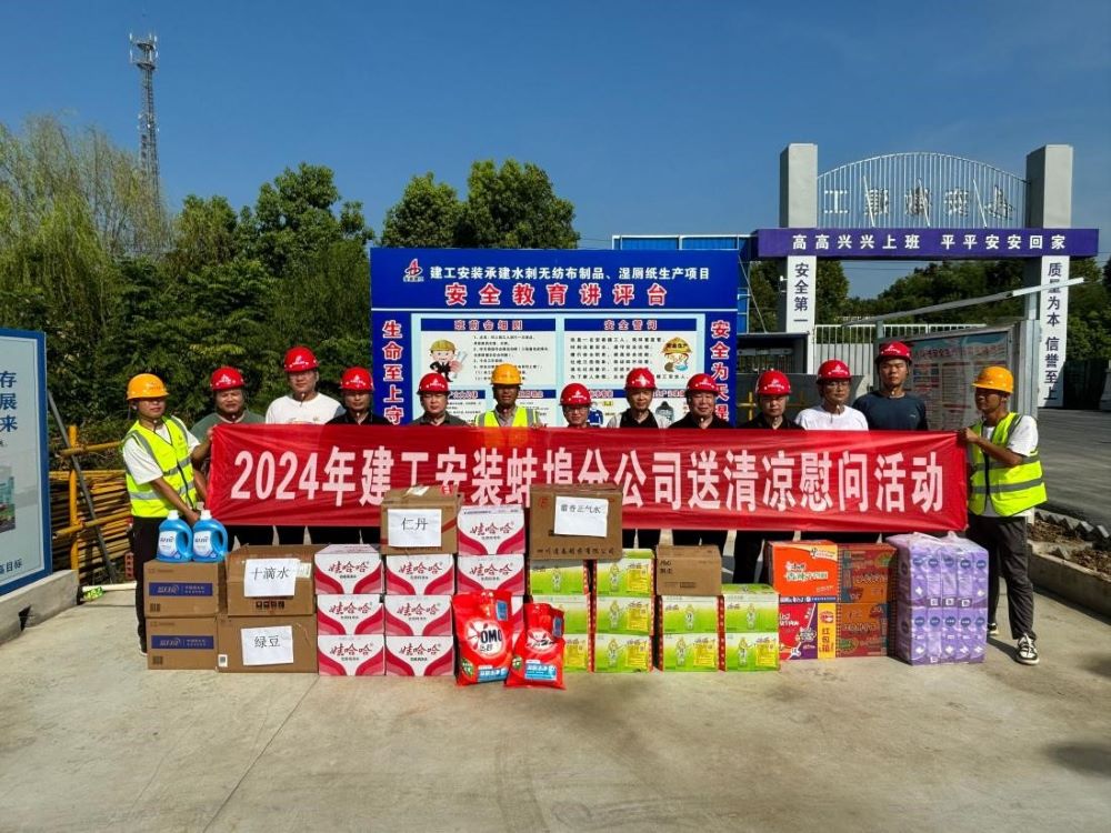 分公司領(lǐng)導(dǎo)班子先后到六鋼大廈(酒店)工程施工總承包項(xiàng)目、蚌埠高新區(qū)電子信息產(chǎn)業(yè)園EPC項(xiàng)目室外廊架管網(wǎng)工程項(xiàng)目、年產(chǎn)2000噸氯蟲(chóng)苯甲酰胺原藥及中間體項(xiàng)目、安徽深巖醫(yī)藥化工科技有限公司醫(yī)藥中間體及新材料項(xiàng)目廠區(qū)單體工程項(xiàng)目、水刺無(wú)紡布制品.濕廁紙生產(chǎn)項(xiàng)目現(xiàn)場(chǎng),為一線施工人員準(zhǔn)備了礦泉水、冰紅茶、綠豆、西瓜等防暑降溫物品,對(duì)他們的辛勤付出表示感謝,并反復(fù)叮囑大家要注意防暑降溫,合理安排施工和休息時(shí)間,確保施工安全。