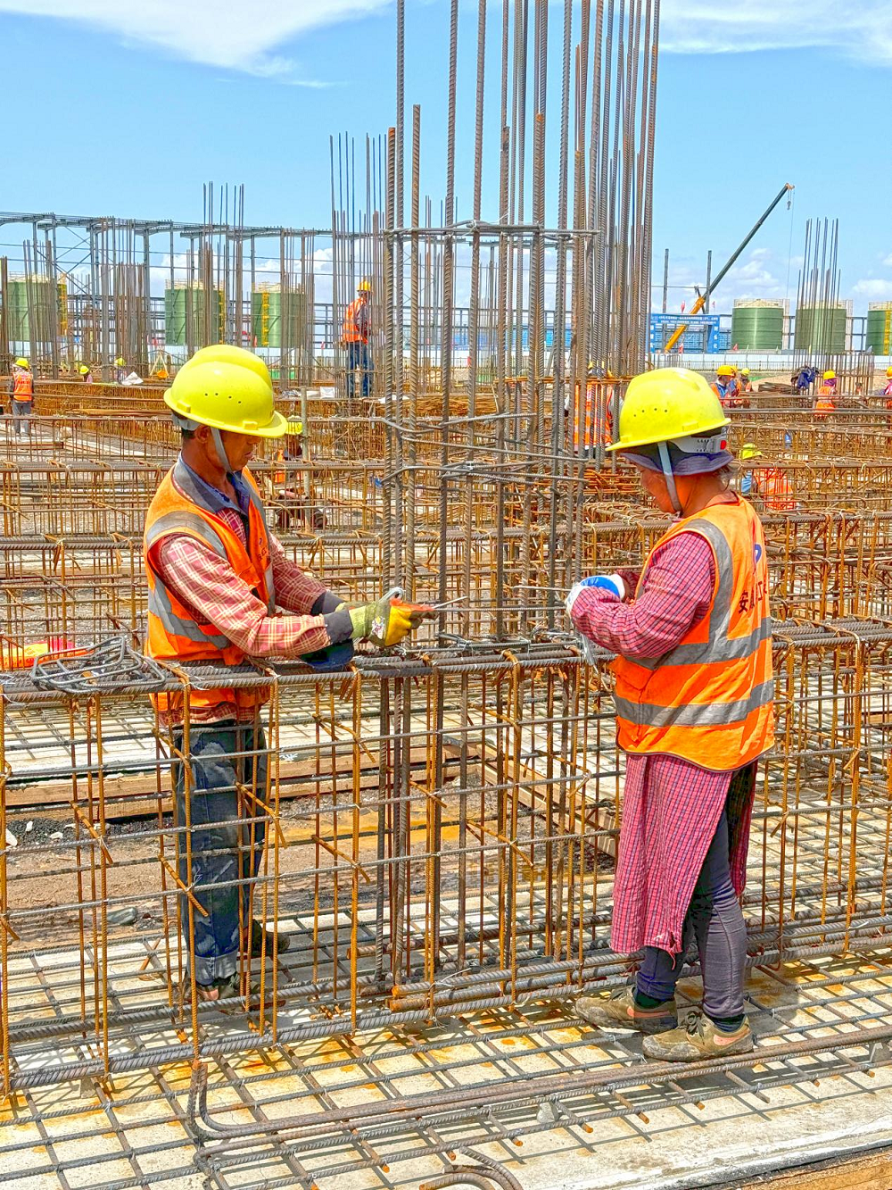 該項(xiàng)目施工現(xiàn)場(chǎng)人頭攢動(dòng),機(jī)械轟鳴,駐場(chǎng)技術(shù)人員頭頂烈日、靠前指揮,施工工人往來(lái)穿梭,或支設(shè)模板,或綁扎鋼筋,與夏競(jìng)速,“激戰(zhàn)”正酣。項(xiàng)目工期緊任務(wù)重,為搶進(jìn)度、嚴(yán)安全、保工期、抓質(zhì)量,項(xiàng)目部嚴(yán)格制定施工進(jìn)度計(jì)劃,統(tǒng)籌安排施工人、材、機(jī),合理高效進(jìn)場(chǎng)施工作業(yè),目前項(xiàng)目正在進(jìn)行變電所及廠房的基礎(chǔ)工程。