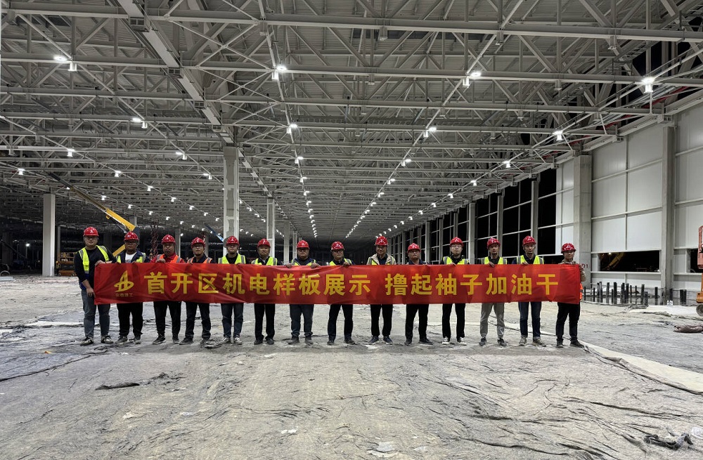 10月1日,國慶黃金周第一天,在建工安裝合肥經開區臨湖智能制造產業園項目施工現場,全體參建人員正以火熱干勁全力推進項目建設,順利完成項目首開區機電樣板展示。