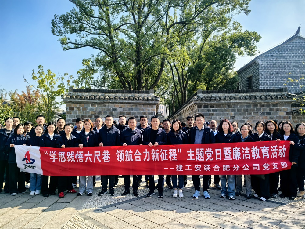 為深入學(xué)習(xí)貫徹習(xí)近平總書(shū)記考察安徽重要講話(huà)精神,弘揚(yáng)中華民族傳統(tǒng)美德,加強(qiáng)分公司黨風(fēng)廉政建設(shè),11月2日,建工安裝合肥分公司黨支部組織職工赴桐城市“六尺巷”開(kāi)展主題黨日暨廉潔教育活動(dòng)。支部全體黨員、團(tuán)員青年、機(jī)關(guān)全體員工、項(xiàng)目部管理人員參加此次活動(dòng)。