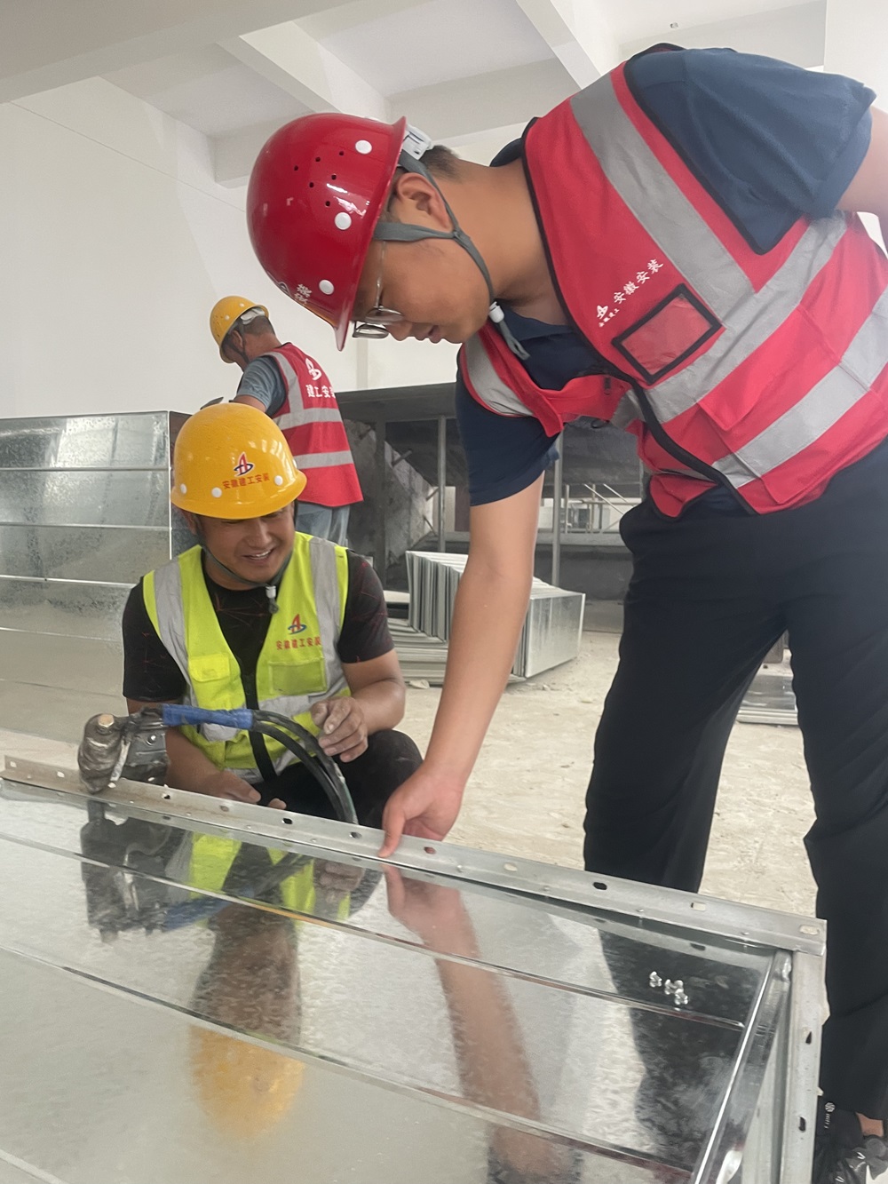 施工初期,編制責任成本階段,他組織專人專班研究擬定實施性施工組織設計。三個基地項目的防排煙風管施工面臨著工藝復雜,施工成本較高,且成型觀感較差的問題。他通過現場與監理、業主的溝通把防排煙風管改成鋼面鎂質復合風管。此種風管不僅符合新規中對于風管耐火性、隔熱性及完整性的要求而且兼具了美觀、輕體及安裝便捷等優勢。此變更預計可為項目節省30萬元。