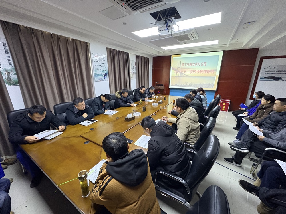 歲序嘗易,華章新日。1月18日上午,安慶分公司召開2024年度員工績效考核述職會。會議由分公司副經理、支部副書記、工會主席李雙江主持,分公司領導班子成員及全體員工參加會議。