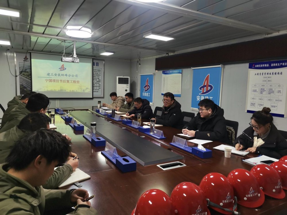 2025年2月11日,分公司黨支部書記、經(jīng)理趙銘亮一行赴寧國水刺無紡布制品、濕廁紙生產(chǎn)項(xiàng)目開展春節(jié)后復(fù)工檢查,并召開現(xiàn)場工作會議,對項(xiàng)目工期進(jìn)度、質(zhì)量管控、成本管控、人才培養(yǎng)等方面進(jìn)行安排部署,為項(xiàng)目新一年建設(shè)開好局、起好步指明方向。分公司副經(jīng)理張斌及各部門負(fù)責(zé)人陪同檢查。