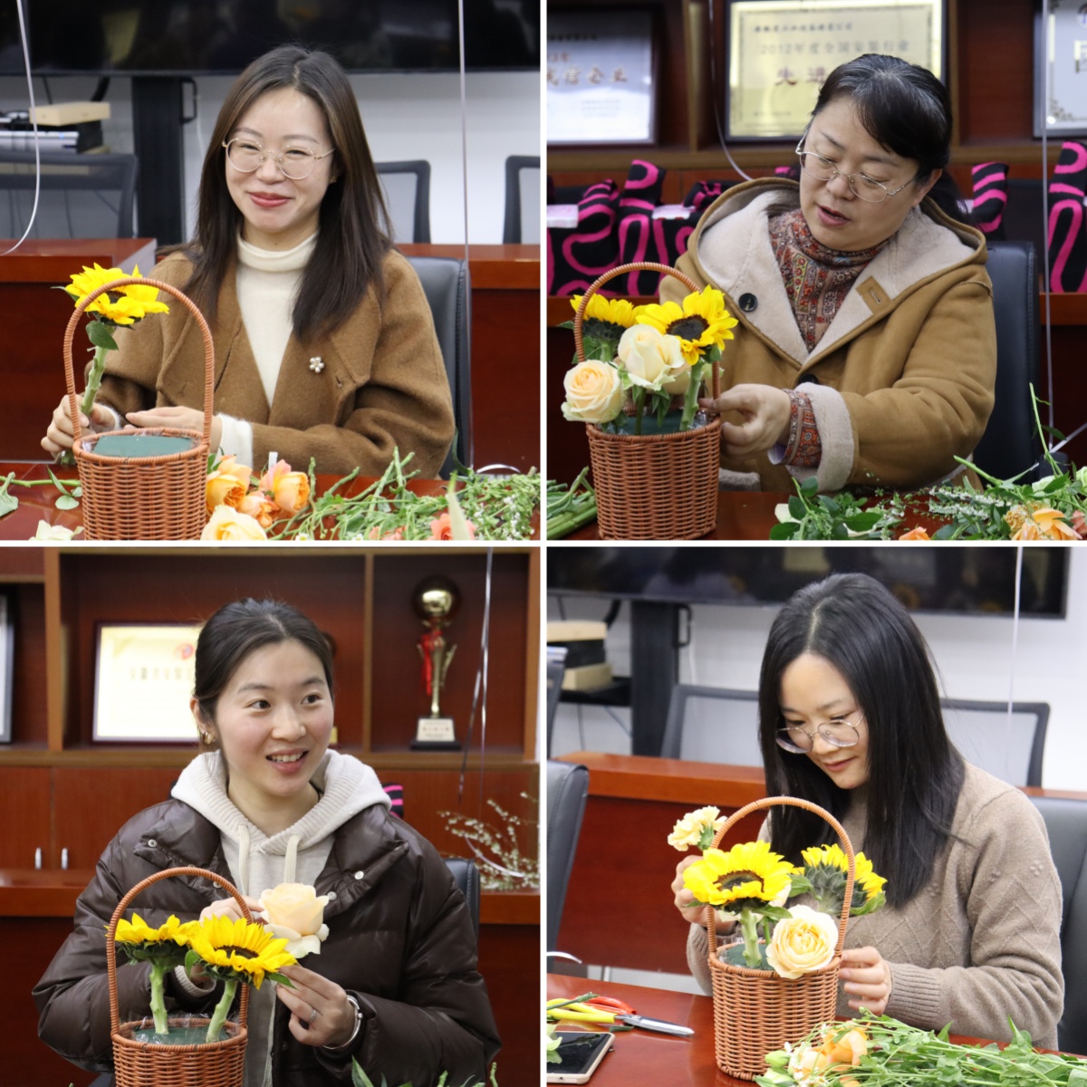 活動現(xiàn)場花香四溢,充滿著春天的氣息,專業(yè)花藝師從花材特性、色彩美學(xué)到造型構(gòu)思向大家進(jìn)行了系統(tǒng)講解并進(jìn)行了現(xiàn)場演示。女職工們興致盎然、躍躍欲試,充分發(fā)揮自己的想象力,以高漲的熱情投入到插花創(chuàng)作中,紛紛化身“春日設(shè)計師”,將玫瑰的熱烈、百合的芬芳、向日葵的陽光巧妙組合,在修剪與構(gòu)思中展現(xiàn)女性的細(xì)膩匠心。大家一邊插花創(chuàng)作,一邊互相交流著自己的想法和創(chuàng)意,現(xiàn)場充滿了歡聲笑語、其樂融融。