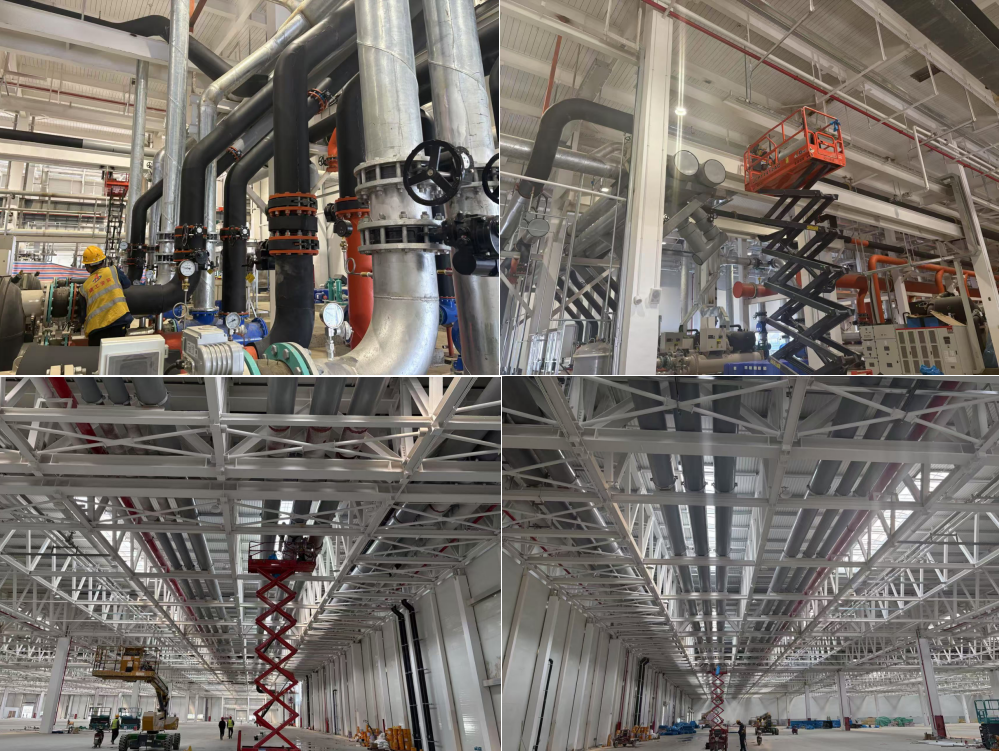 自一季度以來(lái),項(xiàng)目部以“2025開(kāi)局即決戰(zhàn)”的昂揚(yáng)斗志,迅速掀起“大干快上”施工熱潮。對(duì)各車(chē)間、各系統(tǒng)剩余工程量展開(kāi)全面梳理統(tǒng)計(jì),同時(shí)針對(duì)剩余工程量堅(jiān)持每日召開(kāi)專(zhuān)題會(huì),以倒排計(jì)劃為“發(fā)令槍”,對(duì)照時(shí)間節(jié)點(diǎn)要求各班組加班加點(diǎn)、不折不扣完成。截至發(fā)稿,車(chē)間一大面積施工基本完成,形象進(jìn)度完成約96%;車(chē)間二形象進(jìn)度完成約90%;車(chē)間四形象進(jìn)度完成約92%;站房一各設(shè)備管道基本安裝完成,正在調(diào)試中,形象進(jìn)度完成約90%。目前,各車(chē)間工藝生產(chǎn)均已進(jìn)場(chǎng),燃?xì)忮仩t點(diǎn)火成功、空壓站完成試運(yùn)行、工藝24h冷凍水、恒溫恒濕空調(diào)均已投入使用;各車(chē)間工藝區(qū)送電已到位、供水完成。